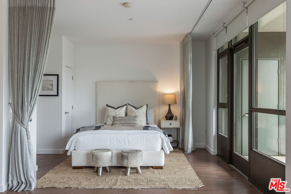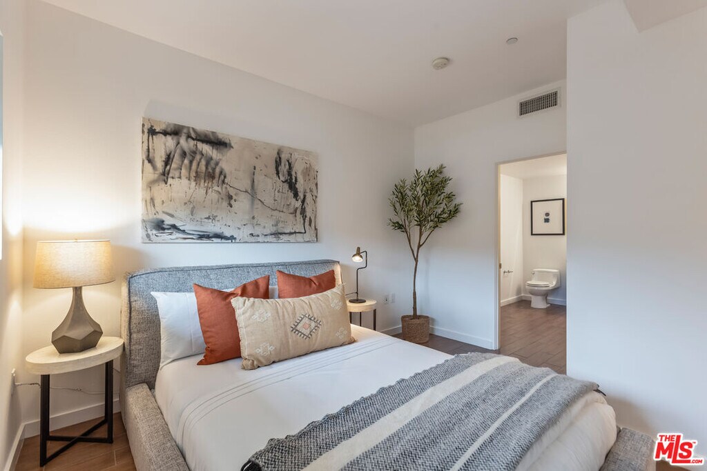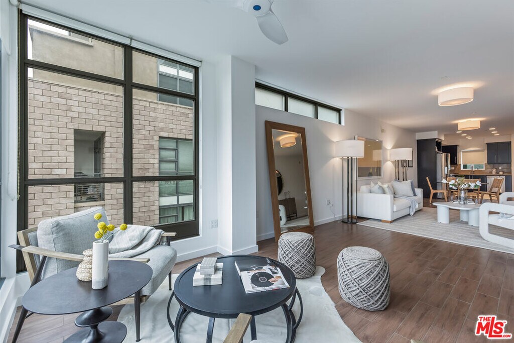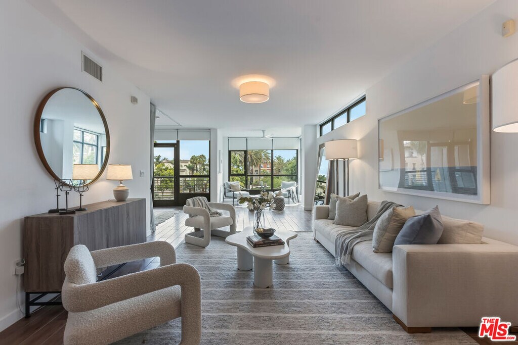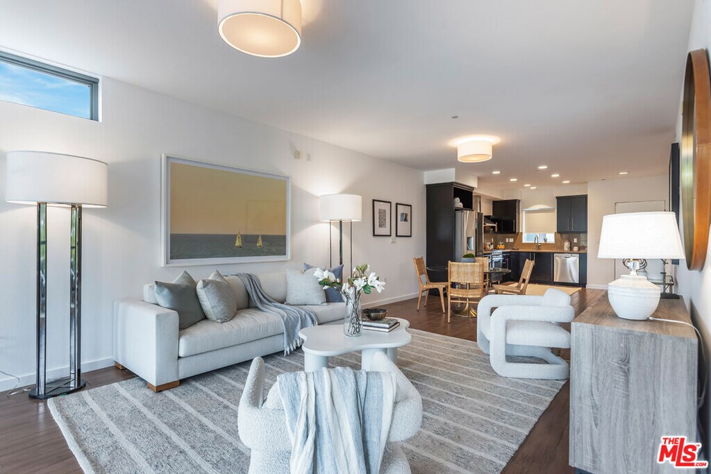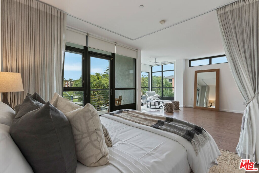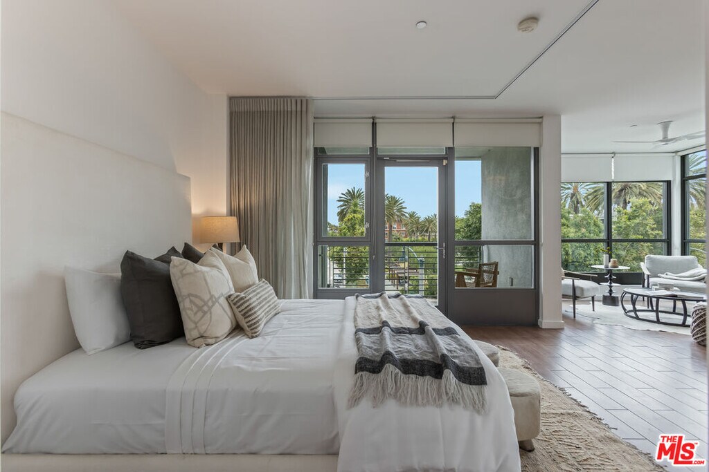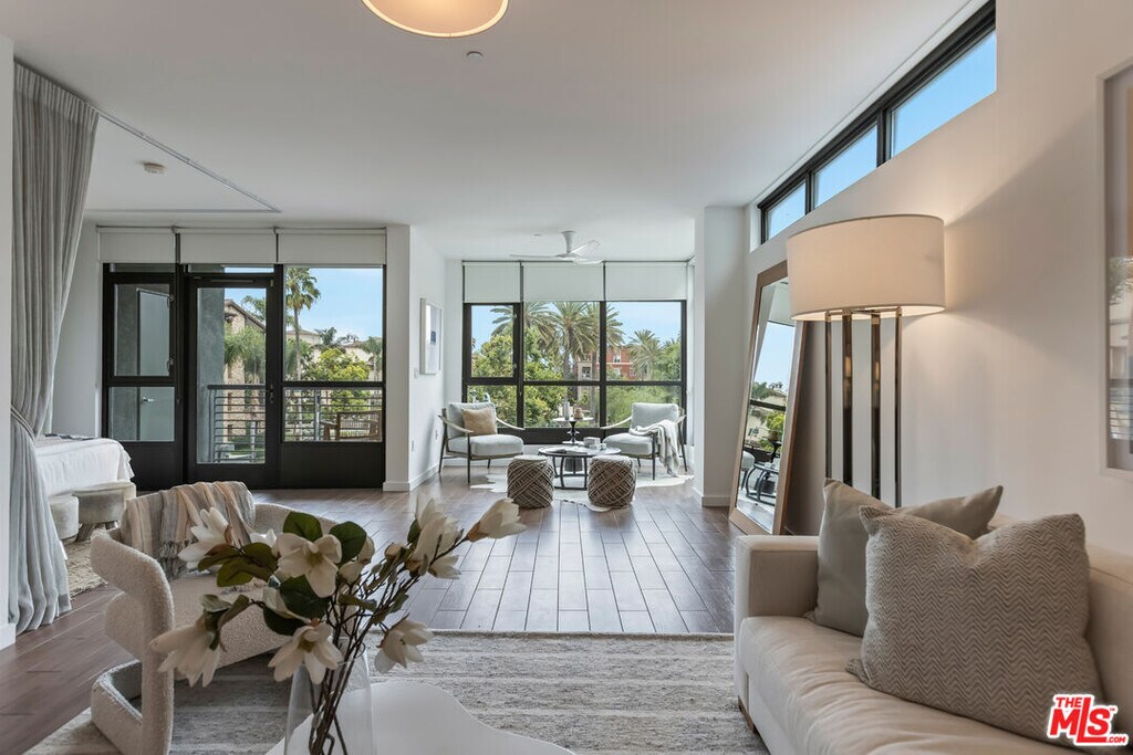 This spacious 1,400 sq. ft. residence at Concerto Lofts features an open floor plan with bamboo flooring throughout and a flexible office space. Expansive floor-to-ceiling windows showcase south-facing treetop views and fill the home with natural light all day. The primary suite flows into a private bathroom with dual vanities, soaking tub, and separate shower. Smart recessed lighting and a Nest thermostat provide modern comfort. Two individual parking spaces with extra storage and EV chargers are included. Concerto Lofts residents enjoy an array of premium amenities: swimming pool and spa, fitness center, fire pits, picnic and BBQ areas, private movie theaters, community events, hiking trails, and a beach shuttle. The complex sits just steps from Concert Park, dining, and shops, and is a very short distance to Google, YouTube, and top Silicon Beach entertainment and lifestyle destinations. MLS# 25585963