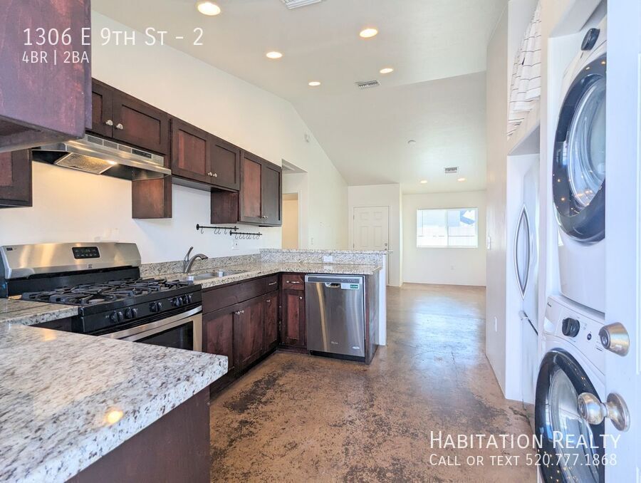 ********We only accept applications at Fyi, apps are transferrable between all active listings from Habitation Realty for up to 30 days, so you need to only apply once!!!******** *****Flexible lease terms!! (Fyi, this unit is already pre-leased for 2026-2027.)***** Awesome location within walking distance to U of A. Just 2 blocks from the Rec Center and Campus off of Highland and 9th Street. 4 bedroom, 2 bathroom home built in 2014 with a large living room, granite countertops, all stainless steel appliances, polished concrete floors, and a large yard! 4 Bedrooms, 2 Bathrooms 1200 Sqft Washer/Dryer Refrigerator University Area Oven/Stove Dishwasher Off-Street Parking Sam Hughes Area Rincon Heights Area Stainless Steel Appliances Ceiling Fans Concrete Floors Heat and AC Included $2050 due at lease signing. This includes a $1400 refundable security deposit, a $400 non-refundable cleaning fee, and a $250 non-refundable leasing fee. First month's rent due one business day prior to move-in. Tenants to arrange and pay for gas and electric. The water/sewer/trash bill will be split with the back house tenants; this unit will pay 75% of the bill, charged back monthly. Sorry, no pets allowed. We do charge a $55 per person application fee, and all potential tenants must pass a credit, criminal, and prior eviction screening. Tenants without qualifying personal income will be required to apply with a guarantor. Professionally managed by Habitation Realty. Equal Housing opportunity, of course!