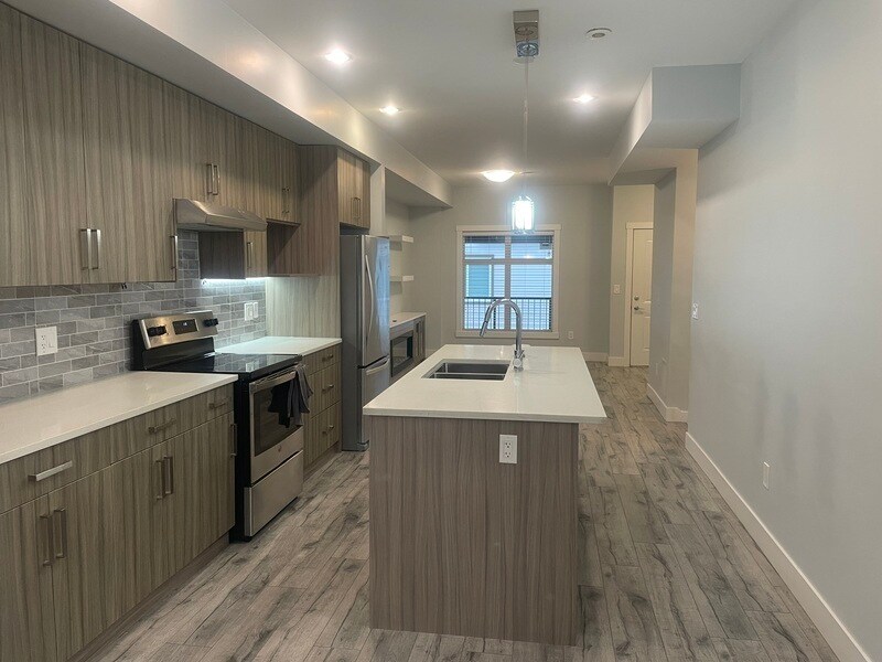 Location: 4-1308 Rutland Rd N, Kelowna, BC Rent: $2500 + Utilities (FortisBC Gas & Electric) Availability: Now Features: This beautiful, bright 3 bedroom, 2.5 bathroom townhome includes a large tandem garage. It is located in a 36 unit rental community on Rutland Road. The three level 3 bedroom, 2.5 bathroom home includes a large tandem garage. These spacious, uniquely designed townhomes are perfect for a modern lifestyle. The interiors are functional and durable for family living. Each home features engineered quartz stone counter tops, sleek European-style cabinetry, durable laminate flooring and stainless-steel appliances. This is for a minimum 12-month term in a rental community. As a rental purpose-built property, you will have security in the fact that it is not your responsibility to move because the owners want their homes sold or occupied by themselves - you can rest assured knowing this was built for renters like yourself! Layout: The main living space is located on the second level. The spacious design includes an island kitchen with bar seating, a separate dining space and a living room with an electric fireplace and access to the covered deck. There is also a ½ bathroom located on this floor. All 3 bedrooms are located on the third floor. The large primary bedroom has room for a king-sized bed and an ensuite bathroom that includes double sinks and a glass walk-in shower. The second and third bedrooms are just steps away from the full bathroom. The laundry is conveniently on this floor as well. The large tandem garage fits two cars in a row with a plug in for an electric car and a flex area for a gym or storage space. The small back patio is landscaped with concrete pavers and no grass. Neighbourhood: Falconwood Town Homes is centrally located in the community of Rutland. It is blocks away from Pearson Elementary School, Rutland Middle School and Rutland Senior Secondary School. It is walking distance to shopping, dining and the community recreation centre. Just a short drive away from Orchard Park Mall, Costco, UBCO, the airport and more. Main bus routes are only a block away. Requirements: - Credit & reference checks required. - Security deposit & Tenant insurance required. - Pets considered. - No smoking. - Minimum 1 Year Lease. AS AGENT FOR OWNER: Aoife O'Neill Personal Real Estate Corporation Licensed Property Manager The Agency Kelowna