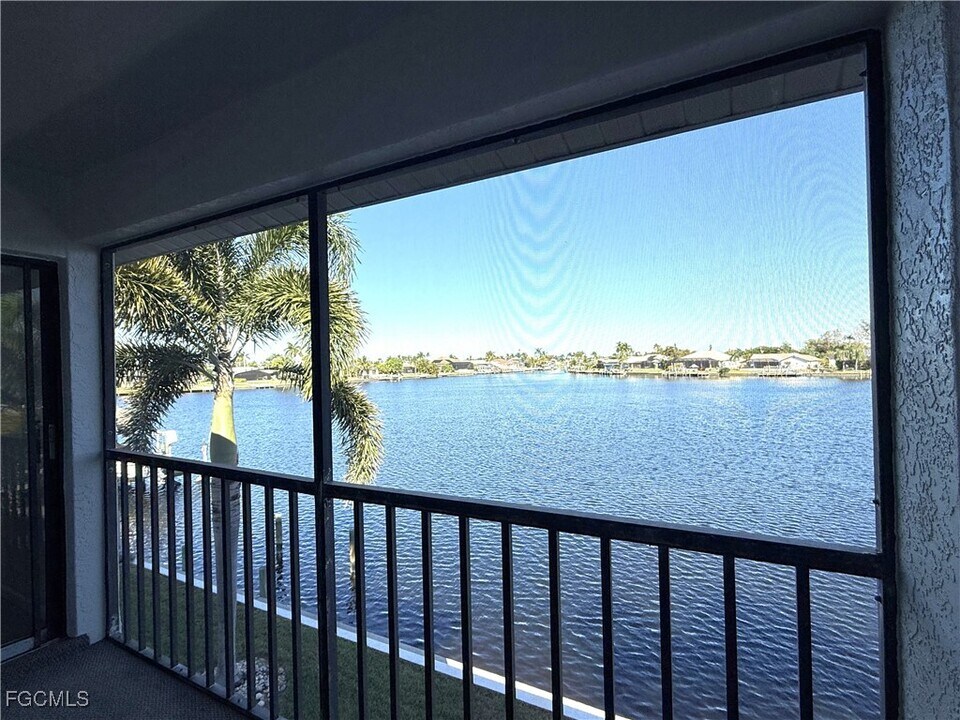 SPACIOUS LAKE FRONT Gulf Access Condo,2nd floor remodeled unit,with panoramic water views! The large open living room and dining room are banked with windows overlooking serene Lake Louise. The fully equipped kitchen features quartz countertops and black appliances with a 2-sided counter bar. The Master Suite features a Queen-sized bed,large walk-in closet and adjoining private bath. The screened balcony has entrances from both the Living area or the Master Suite-perfect for having your morning coffee or enjoying your evening beverage! The Guest bedroom also features a Queen-sized bed and large closet and is as nicely decorated and appointed as the rest of this home. This condo also features a separate laundry/utility room with full size washer/dryer. You have an assigned carport for parking as well as guest parking available. The community has lovely landscaping,and a community pool steps from your door. You will not want to leave anytime soon with these peaceful water views! Centrally located to all that Cape Coral and Lee County has to offer. Ninety day minimum stay per condo rules. Sorry no pets allowed. Currently rented JANUARY,FEBRUARY,MARCH 2026