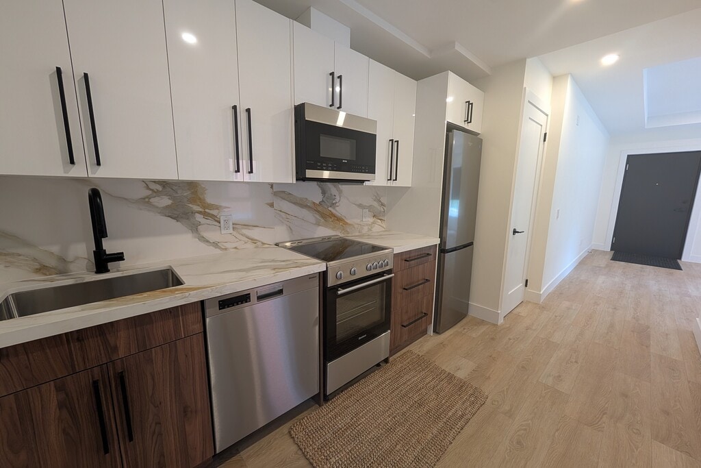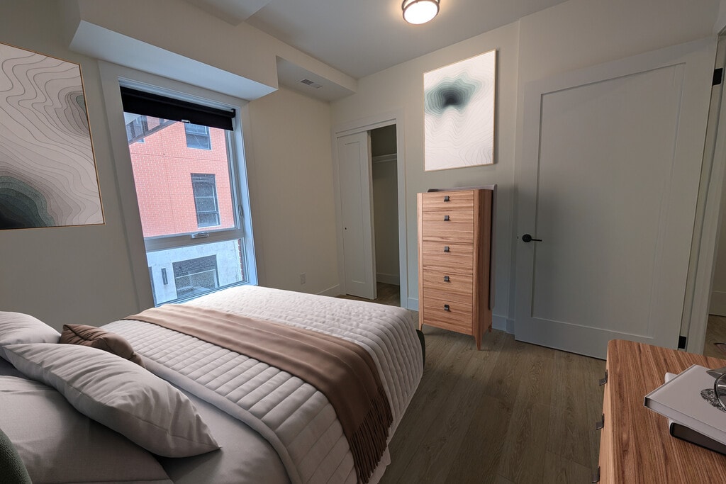 Welcome to The Bridge – Modern Boutique Living in Hamilton Highlights: ?? Eco-Friendly: All-electric, zero-carbon building ?? Smart Living: Thermostats, keyless entry, energy-efficient lighting ? High-Speed Fiber Internet ??? Secure: Controlled access & 24/7 surveillance ?? Comfort: Private HVAC, air conditioning, in-unit laundry Inside Your Suite: ?? Gourmet Kitchens: Quartz counters, stainless steel appliances, open layouts ?? Luxury Bathrooms: Full-tile showers & modern fixtures ?? Spacious Layouts: Bright, natural light Location: ?? 95 Walk Score – steps from dining, cafes, galleries, hospitals & transit