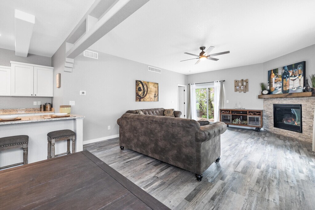 - Additional Property Details- This open concept condo could be your new home. Efficient kitchen space with island for seating. Cozy up to your corner gas fireplace at night or enjoy your private patio. Private master BR w/generous walk-in closet. Master boasts a custom tiled, walk-in master shower. First months rent plus $2395 security deposit due upon acceptance. $1200 additional sec deposit for pets. 2 dogs max; less than 50#. 2 car garage and full basement. Also, NO SMOKING on premises inside home, garage or on property outside. Gently lived in, has the new look and feel to it. Don't wait - won't last long! Incl; Gas range, refrigerator, microwave & dishwasher. EXCL: Washer/dryer. Interior photos of similar floor plan of another unti.