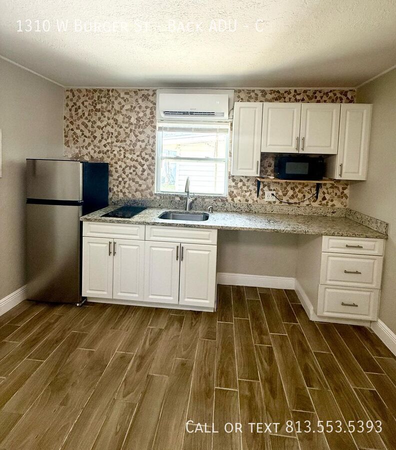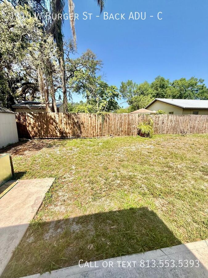 Discover this charming efficiency apartment located in Tampa, offering the perfect blend of comfort, convenience, and value. Priced at $950/month with a flat utility fee of $225 covering water, electricity, lawn care, and trash pickup (internet is the tenant’s responsibility), this unit is ideal for a single occupant or couple. The space features tile flooring, neutral tones, ample natural light, and a practical kitchenette with modern cabinetry and essential appliances. Enjoy the convenience of on-site parking and a fenced yard, plus a prime location with quick access to I-275 and public transit. Nearby amenities include Walmart (3.5 miles), Publix (2.8 miles), Busch Gardens (10 miles), The Florida Aquarium (8 miles), and ZooTampa (3 miles). Dining hotspots like Ulele (4.5 miles) and Thee Burger Spot (2 miles) are just minutes away. Zoned for Forest Hills Elementary, Memorial Middle School, and Chamberlain High School (only 0.6 miles away), this unit is also a great fit for students and professionals. Pet-friendly options may be available (restrictions apply). Don’t miss out—schedule your showing today! None