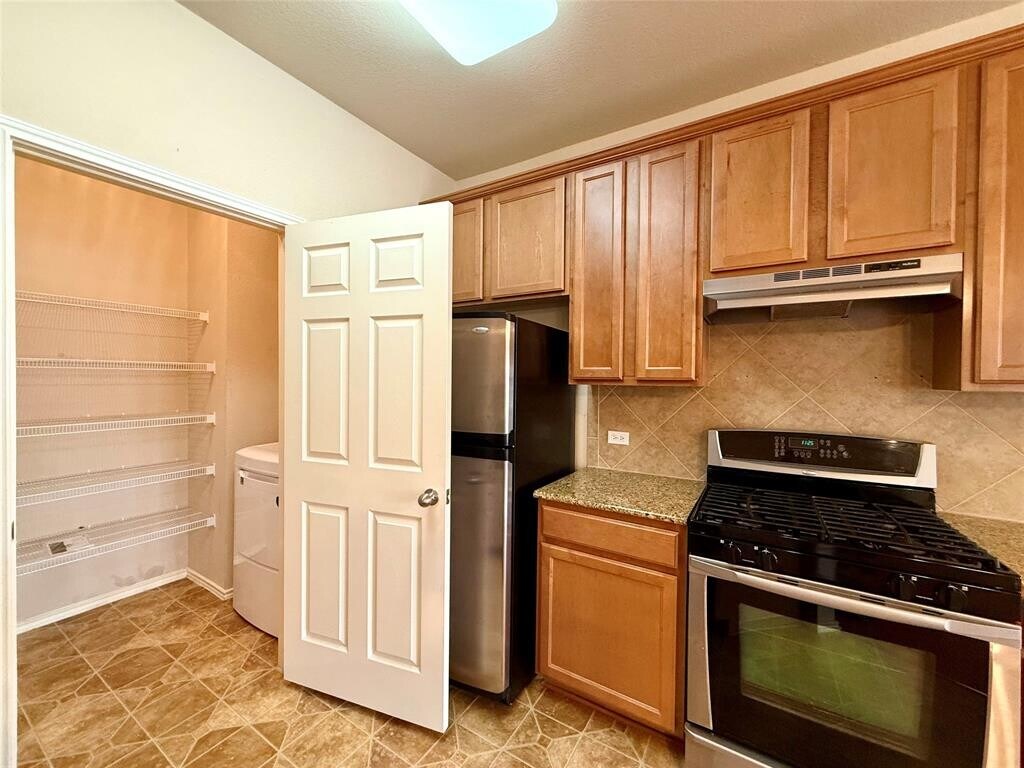 2nd bedroom doesn't have a closet, would be great as a 1 bedroom w/ extra room for office or playroom!! Small pet welcome, unit has wood floors, carpet in bedrooms and vinyl in kitchen and bathrooms, vaulted ceilings and 2 balconies! Stainless appliances, granite countertops, washer and dryer included! *there is no longer a built in microwave*