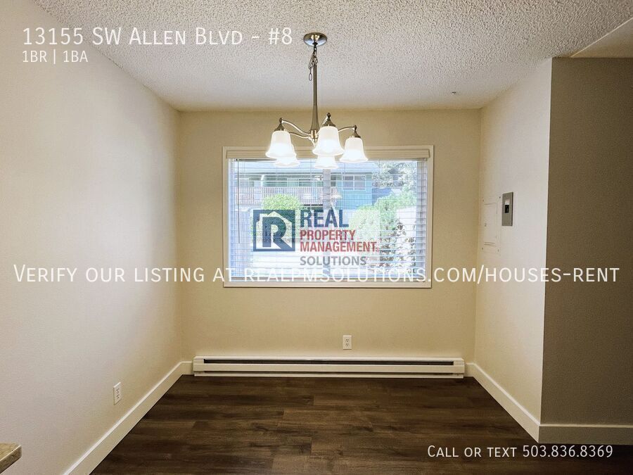Welcome to Your Next Home in an Established Beaverton Community Spacious, updated, and perfectly located—this ground-level corner unit is part of a well-kept and quiet 24-unit condo community in Central Beaverton. Ideal for those seeking a calm, long-term home base, this 1-bedroom, 1-bath condo has just been refreshed with brand-new flooring, fresh paint, and a modern kitchen featuring stainless steel appliances. Enjoy abundant natural light in the open living area, with large windows and a sliding glass door that opens onto your fenced private deck—perfect for relaxing, reading, or hosting a friend. Key Features: - In-unit washer & dryer combo - Window AC units for comfort - 1 dedicated parking space - Separate storage unit included - Water, sewer, and trash are included - Non-furnished unit (photos show previous staging) - Guest parking available on-site Whether you're commuting, working remotely, or simply enjoying the area, you'll love being close to parks, grocery stores, restaurants, and public transportation. A dependable home in an established community — offering peace, convenience, and value. 13155 SW Allen Blvd Beaverton, OR 97005 1 Bedroom | 1 Bathroom | 762 Sq Ft Lease Term: 12 months minimum Rent: $1595/month Deposit: $825 Additional Details: Application Fee: $32 per financially responsible adult Applications can be submitted online at Water/Sewer/Garbage/Recycling: Included Tenant Responsibility: All other utilities Parking: 1 Dedicated Parking Space for Tenant Renter's Liability Insurance: Required amount of $300,000 Smoking: Not allowed on premises Pets: $250/pet deposit + $25/month pet rent (2 max) Note: This is not considered an accessible dwelling unit. Email or call to schedule a tour: LINK TO APPLICATION - Please do not apply any other way!! **Applications will be accepted in the order received. Please note an eight-hour penalty will be added if your application is received before the time stated above. All applicants will be subject to meet the required terms stated in the screening criteria attached to the rental application. Applications received at the same time will be prioritized by the desired date of move in and priority will go to applicants that have toured the interior of the property. Contact us at: call or text or email