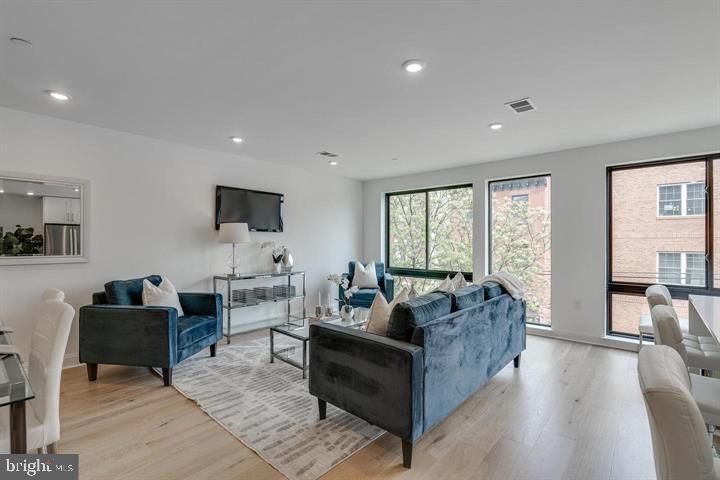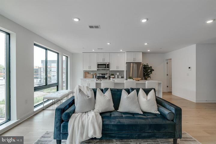 Welcome to this stunning penthouse condo with exclusive private parking! Offering modern comfort and style in a prime location just steps from Northern Liberties and Fishtown. Built in 2021, this spacious home features an open floor plan designed for both entertaining and everyday living. Upstairs, you’ll find two generously sized bedrooms and two and a half bathrooms, each finished with clean, contemporary details. The kitchen is the centerpiece of the home, complete with a sleek island, stainless steel appliances, and a built-in microwave. Warm hardwood floors run throughout the space, adding character and charm. Other highlights include in-unit laundry with washer/dryer hookups, an intercom system for added security, and a private deck with city views—perfect for morning coffee, evening sunsets, or a weekend barbecue. This home will be available for lease starting September 15, 2025, with flexible lease options between 12 and 24 months. If you’re looking for a thoughtfully designed space with the convenience of city living, this penthouse is one you won’t want to miss.