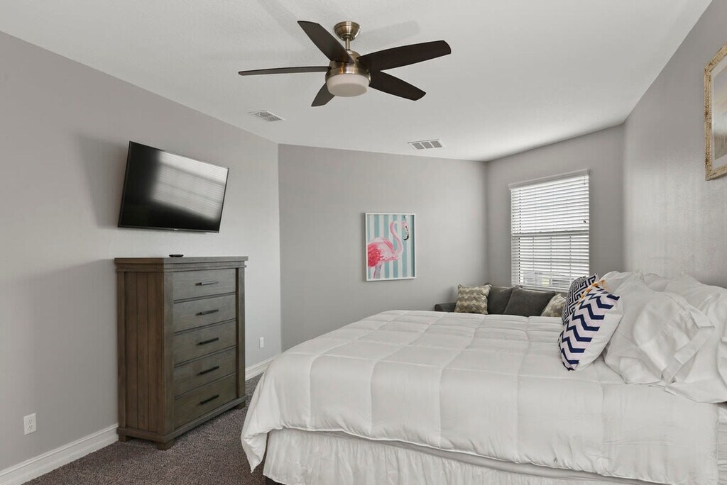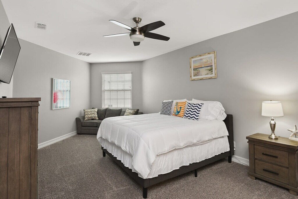 The advertised rate of $6,141/month is the lowest available price, based on a 30 day(s) stay with a move-in date of August 23, 2026. Rates vary depending on the duration of stay, season, and other parameters. For exact pricing and additional pricing components, please visit our website and enter your desired move-in and move-out dates. The rate is applicable when billed upfront; it can be higher if billed in multiple payments. Come and feel at home in this new beach-style décor townhome, boasting 3600 square feet of living space. It is spacious enough to bring additional people and air mattresses, making it an excellent home away from home. Furnished with tasteful beach-themed decor, this spacious family townhouse is an ideal home base in Indian Harbour Beach. Enjoy the cool coastal breeze right from this property’s private patio or upper balcony. The wide living room features soft sofas and a mounted flat-screen cable Smart TV, and complimentary Wi-Fi is available. The brand new fully equipped kitchen is every chef’s dream, complete with a long center island, stainless steel appliances, and quartz countertops. Challenge your travel companions to a quick foosball match in the upstairs game area. All 5 of the bedrooms are beautifully furnished and boast complimentary coastal colors and textures. Two of the bedrooms come equipped with en-suite bathrooms featuring walk-in showers. While staying at this townhouse, you’ll have access to the community pool complete with loungers and a new pergola and cabana area. Only dogs are allowed at this property, with a fee of $100 per pet per stay. Millennium Beach Park and Canova Park are both only a 15-minute walk away from this townhouse. On your walk to the sand, you’ll be able to stop in a variety of shops, cafes, or restaurants that line the main street. There are even nice paths around the bass fishing pond if you feel up for a stroll on the property's grounds. Jet ski rentals, kayak rentals, and other boat rentals surround this Indian Harbour Beach area. Grocery stores, shopping centers, and plenty of other sites within walking distance help make this townhome the ideal home-away-from-home on the coast. The USSSA Sports Facility is just a 25-minute drive from this townhome, so you can attend that must-see game with ease. The local paddle and oars park and yacht club are also a must visit. Quiet hours are from 10:00 PM to 7:00 AM. Unauthorized events, parties, or disruptive noise may result in immediate removal without refund. Guests are responsible for all damage, excessive cleaning, missing items, fines, and unauthorized fees. Smoking, vaping, unauthorized pets, parties/events, or unreported damage are not covered by any damage waiver. [SI]