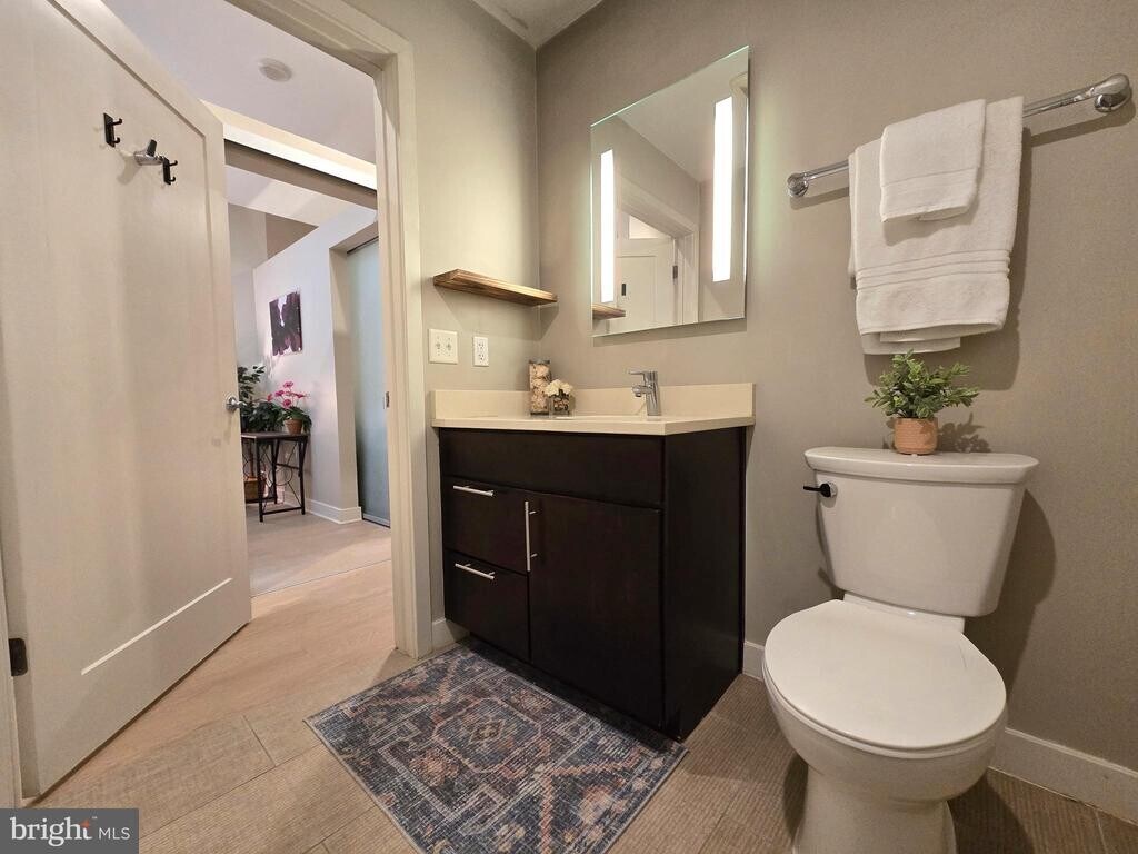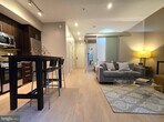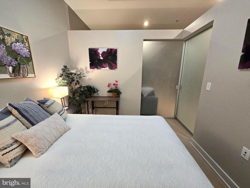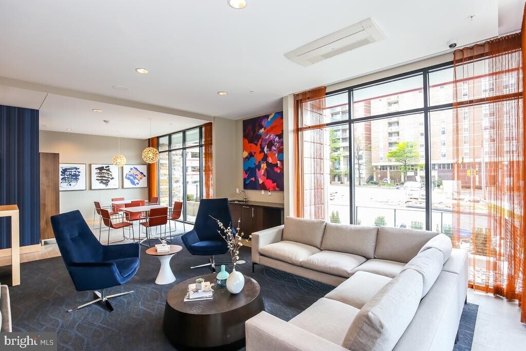 This exceptional condo for rent stands out as one of the few units featuring a truly expansive private patio—over 200 square feet—perfect for outdoor dining, entertaining, or relaxing. Inside, the open floor plan is enhanced by newer flooring, quartz countertops, and stainless steel appliances with gas cooking. The bedroom offers a stylish touch with dual barn doors, while thoughtful storage solutions include a bonus nook above the bedroom closet and separate storage unit. Residents enjoy a full suite of amenities, including a fitness room, separate bike storage, a sophisticated lobby with fireplace, free Wi-Fi in common areas, a sky lounge, and a stunning roof deck with western exposure showcasing views of downtown Bethesda, the Mormon Temple, and sunsets. Ideally located just steps from the Silver Spring Metro, the Montgomery County Aquatic & Recreation Center, and Mom’s Organic Market, this home offers the perfect blend of comfort, style, and unbeatable convenience. Vouchers Welcome.