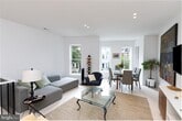 Now available is this stunning, modern, two-level penthouse apartment located near all that Columbia Heights has to offer. Walk in and be greeted by a large, open plan living area that invites in lots of light and is accented by gorgeous wood flooring. Adjacent find a kitchen that even the pickiest chef would be envious of featuring paneled appliances (with gas cooking!), an oversized kitchen island, upgraded counter tops and lots of cabinetry. Two well sized bedrooms with an adjoining Jack and Jill full bath and a convenient half bath are also found on the first floor. On the second floor you will find a huge den area, perfect for a home office, exercising, or additional living/recreation space. The oversized primary bedroom boasts an adjoining patio that overlooks the front of the home as well as an en suite bath with dual sink/vanity, a huge soaking tub, step in shower and a walk in closet. The rear facing deck is ideal for entertaining, having your morning coffee or evening cocktail, as well as al fresco dining. The retractable awning provides additional comfort! Steps away, find all that Columbia Heights to offer including multiple grocery and convenience shopping options. Restaurants abound, from take out to more formal sit-down dining, as well as many Michelin mentioned restaurants can be found within blocks! Multiple public transit options are available, as several bus stops as well as the Metro are just blocks away!