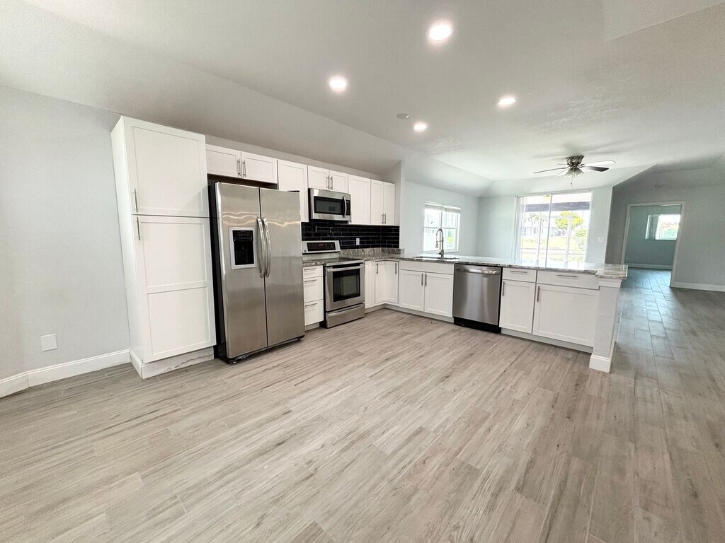 Stunning & Spacious 3/2 Waterfront Duplex – Fully Remodeled with Garage & Fenced Yard! You won’t believe this is a duplex — it feels like a single-family home! This huge,beautifully remodeled 3-bedroom,2-bath home with a 1-car garage offers plenty of space for the whole family and is loaded with high-end upgrades. Step inside to gorgeous wood plank tile flooring throughout and fully remodeled bathrooms that make getting ready each day a pleasure. The brand-new kitchen features granite countertops,stainless steel appliances,a pantry,and a large breakfast bar,perfect for serving meals or entertaining guests. Enjoy true Florida living with a waterfront backyard overlooking the canal — ideal for sipping morning coffee,relaxing with evening wine,casting a fishing line,or launching your kayak for a peaceful paddle. The fully fenced yard offers privacy and peace of mind,keeping your kids and furry friends safe and secure. Inside,the indoor laundry area comes equipped with a washer and dryer,eliminating trips to the laundromat. Conveniently located within walking distance to the Cape Coral Police Department,post office,and close to major routes for easy travel anywhere in Cape Coral. ? This one has it all — space,upgrades,waterfront living,and a fantastic location. Schedule your showing today! * $1,695 a month * First ($1,695) & Security ($1,695) * $65 per Application per Adult. All Adults MUST Apply! * NO smoking * Pets welcomed with pet rent and approval * NO Previous Evictions * 2.5 times monthly rent in Income with COMBINED income ($4,237) * 1 month of Pay Stubs