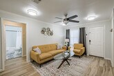 Feel at home in this property located in the heart of the Heights, featuring two separate, fully furnished homes on one property. The front home offers 3 bedrooms and 1 bath, while the back two-story home features 3 bedrooms, 2 baths, and an upstairs family room that serves as an extra sleeping space. This home is professionally managed, with all the comforts of home. You'll have everything you need for a pleasant stay, including body wash, shampoo, dish soap, trash bags, paper towels, toilet paper, cooking oil, coffee, tea, salt and pepper. Baby/toddler equipment is available upon request for a set-up fee of $35. Located in the heart of the Heights, you're close to popular restaurants, bars, and coffee shops. Nearby attractions include the Beer Can House, The Menil Collection, Houston Museum District, Jones Hall, Society for the Performing Arts, Kemah Boardwalk, San Jacinto Battleground State Historical Park, Bayou Place, Theatre District, Downtown Houston nightlife and dining, Alley Theatre, Houston Museum of Fine Art, and the Children’s Museum. Other attractions include the Houston Arboretum, Waugh Bat Bridge Colony, Buffalo Bayou Park Hiking/Biking Trail, Buffalo Bayou Cistern, Sabine Promenade, George Brown Convention Center, The Escape Game Houston, Houston Zoo, Wet N Wild SplashTown Waterpark, and NASA Space Center. There are also many options for upscale dining, leisure and shopping, sports, and universities. Public transportation options are limited in this area, making having a car the most convenient way to get around. For guests without a car, utilizing rideshare services such as Uber or Lyft is recommended for transportation needs. Smoking and vaping are allowed only on the patio. If you use the grill, please clean it thoroughly for the next guest. All TVs are smart TVs with apps for local channels, movies, and streaming services. You are welcome to log into your own accounts. A first aid kit and fire extinguisher are located in the kitchen. Please do not set the fan to “On,” as it will run continuously without improving cooling. Do not set the A/C below 69°F to avoid freezing the system. When checking out or leaving for an extended time, please set A/C to 77°F to conserve energy. If hot water runs out, please allow time for the water heater to recover. There's no need to make the beds. Please wash any used dishes and dispose of trash properly. Handle all appliances with care. Bins are located on the side of the house, with the black bin for trash and the green bin for recycling. If possible, please roll bins to the curb the night before pickup. Do not place bags outside of the bins to prevent animal disturbances. This is a quiet residential neighborhood, so please be respectful of our neighbors at all times.