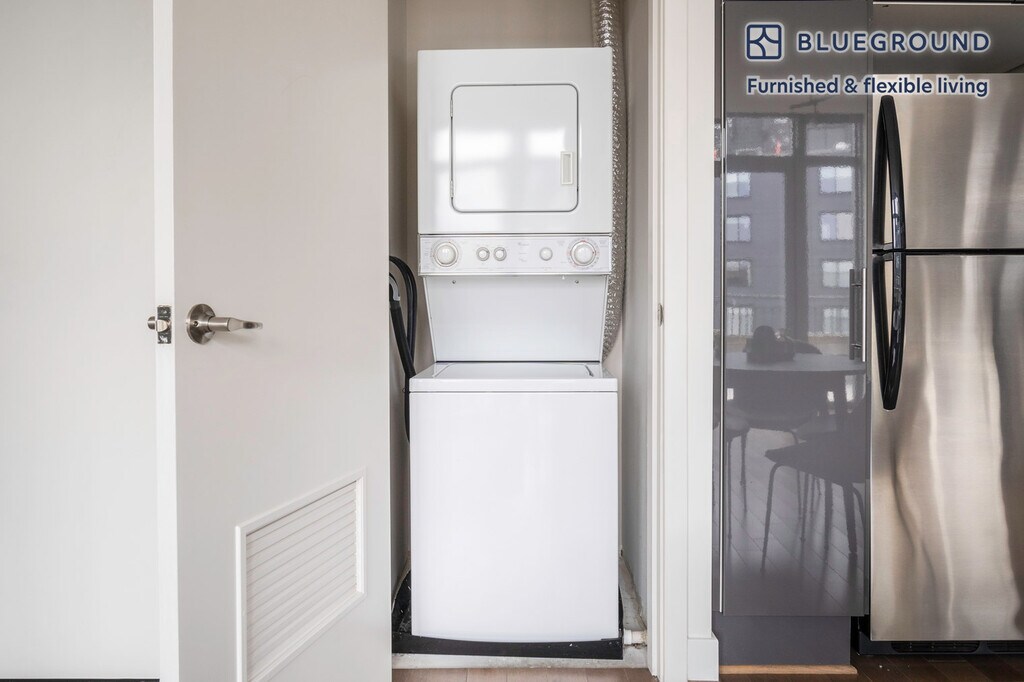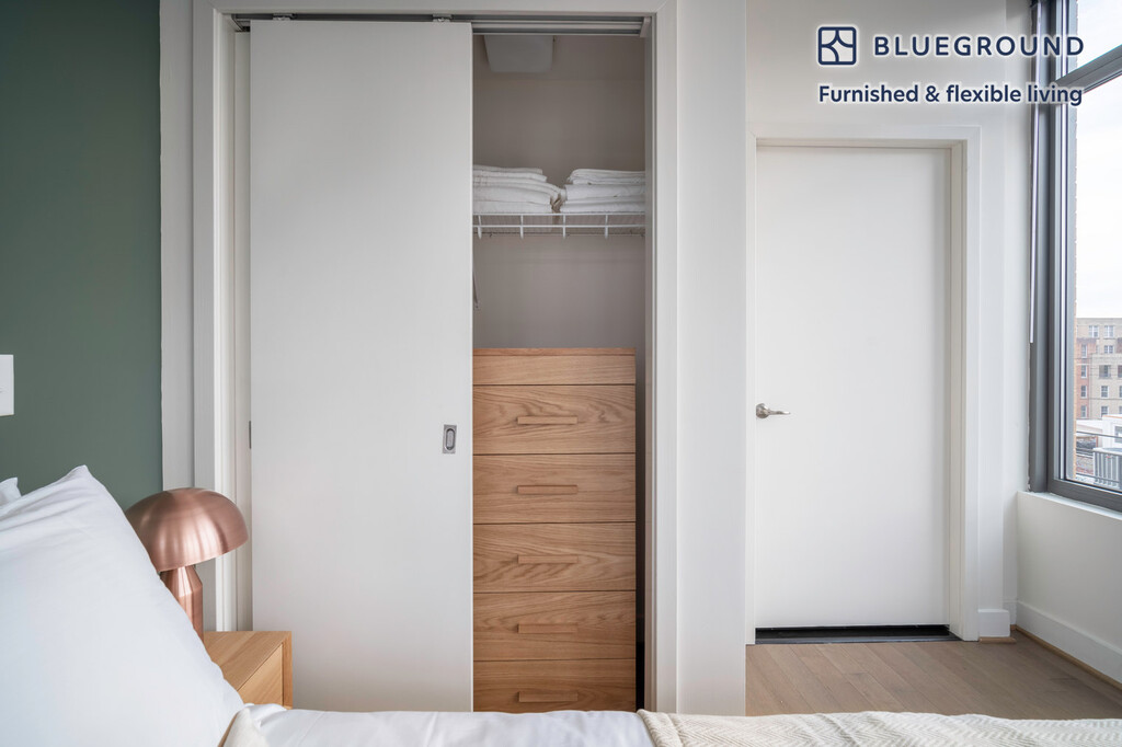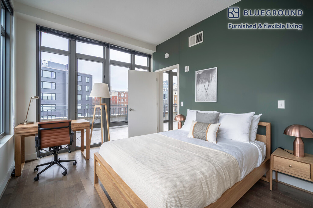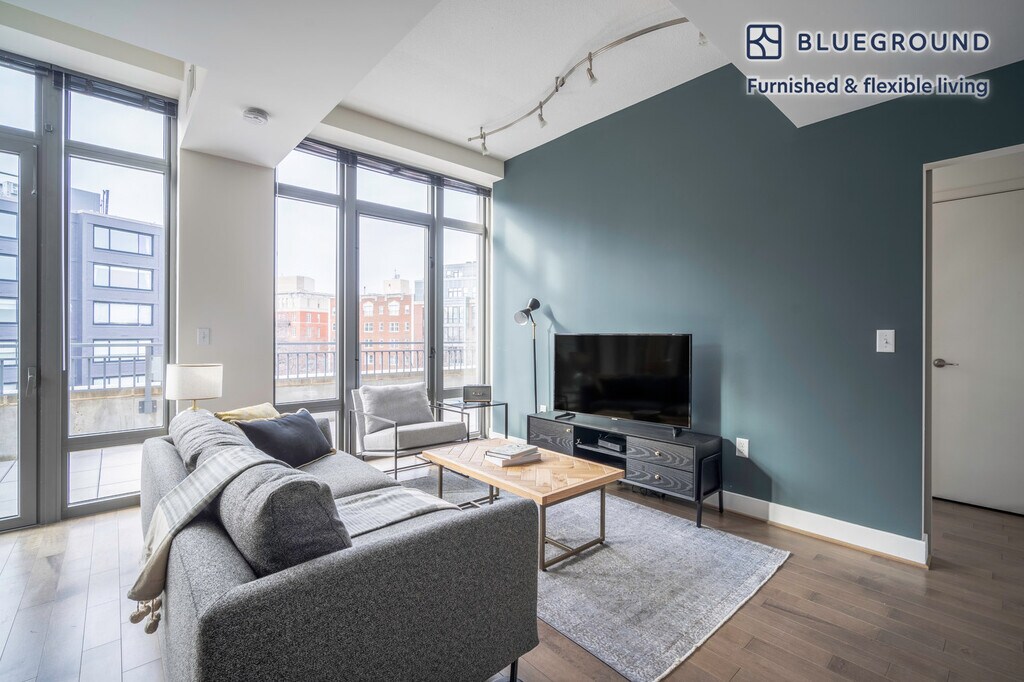Show up and start living from day one in Washington, D.C. with this spacious one bedroom Blueground apartment. You’ll love coming home to this thoughtfully furnished, beautifully designed, and fully equipped Logan Circle home with stunning views over the city. (ID #WDC156) The advertised rate of $2,850/month is the lowest available price, based on a 12 month(s) stay with a move-in date of May 9, 2026. Rates vary depending on the duration of stay, season, and other parameters. For exact pricing and additional pricing components, please visit our website and enter your desired move-in and move-out dates. The rate is applicable when billed upfront; it can be higher if billed in multiple payments. Brokers are welcome to reach out. Were you looking for an unfurnished lease? Try Blueground instead and upgrade from unfurnished to furnished living: - Furnished at rates comparable to unfurnished - No setup or furniture costs - save thousands - Move-in ready - save time, just bring your suitcase Designed with you in mind Thoughtfully designed with bespoke finishes, modern furnishings, and a fully equipped kitchen, you’ll enjoy that “I’m home” feeling with this Blueground apartment. Whether you’re lounging in your pretty living room streaming the latest and greatest entertainment on the smart TV or premium wireless speaker, or getting some well-earned rest on the superior quality mattress with luxury linens, you’ll fall in love with everything this Logan Circle apartment has to offer. This apartment also offers in-apartment laundry. Sleeping arrangements Queen Bed, 63in/160cm Amenities Building amenities unique to this one bedroom apartment include an on-site: - Doorman - Dryer - Elevator - Washing machine - Pets allowed Arrival and ongoing support The entire apartment is yours to enjoy! Throughout your stay, you’ll have access to our Client Experience team through the Blueground App. You can schedule additional cleanings, submit maintenance requests, and view our neighborhood recommendations with just a few taps. We’ll share all details upon confirmation of your stay. Ideally Located This fully furnished apartment is located near Logan Circle, one of DC's trendiest neighborhoods. Thanks to its central location, many of DC's most popular areas are a 15 minute walk away: explore Dupont Circle, head downtown and see the sights or pop around the corner and enjoy a meal at one of the many acclaimed restaurants and bars on 14th Street. Stay in Logan Circle and enjoy a contemporary play at the Studio Theater and take a long stroll by the restored Victorian homes throughout the neighborhood. The neighborhood is served by the McPherson Square and Mount Vernon Metro Stations. Other things to note Building amenities may have an extra cost. This Blueground apartment has flexible lease options, allowing you to book it for one month, a year, or more. Pets are welcome, though weight limits and breed restrictions apply and may incur fees. We take great pride in ensuring every photo displayed is shot in our own units with our actual furnishings. That said, we regularly refresh our decor and furniture arrangement, which may differ from what’s pictured.