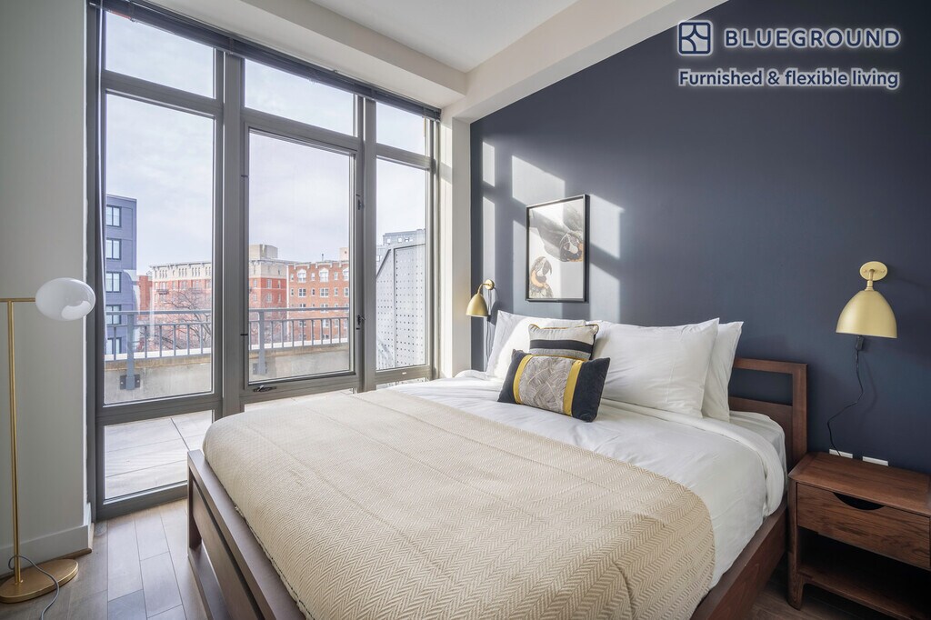 Show up and start living from day one in Washington, D.C. with this pretty two bedroom Blueground apartment. You’ll love coming home to this thoughtfully furnished, beautifully designed, and fully equipped Logan Circle home with stunning balcony views over the city. (ID #WDC161) The advertised rate of $3,340/month is the lowest available price, based on a 1 month(s) and 20 day(s) stay with a move-in date of November 24, 2025. If you’re looking for a 1-year stay, the rate is $4,560/month. Rates vary depending on the duration of stay, season, and other parameters. For exact pricing and additional pricing components, please visit our website and enter your desired move-in and move-out dates. The rate is applicable when billed upfront; it can be higher if billed in multiple payments. Brokers are welcome to reach out. Were you looking for an unfurnished lease? Try Blueground instead and upgrade from unfurnished to furnished living: - Furnished at rates comparable to unfurnished - No setup or furniture costs - save thousands - Move-in ready - save time, just bring your suitcase Designed with you in mind As with any Blueground apartment, you’ll find a thoughtfully designed space complete with beautiful furniture and a fully equipped kitchen in this two bedroom property. And, thanks to our superior quality mattresses, luxury linens, and towels, you can relax knowing you’ll always feel comfortably at home. When you’re ready for some fun, you can take in the Washington, D.C. vibes or bring the entertainment to you with the premium wireless speaker or smart TV. This apartment also offers in-apartment laundry. Sleeping arrangements King Bed, 70.8in/180cm Double Bed, 55in/140cm Amenities Building amenities unique to this two bedroom apartment include an on-site: - Doorman - Dryer - Elevator - Washing machine - Pets allowed Arrival and ongoing support The entire apartment is yours to enjoy! Throughout your stay, you’ll have access to our Client Experience team through the Blueground App. You can schedule additional cleanings, submit maintenance requests, and view our neighborhood recommendations with just a few taps. We’ll share all details upon confirmation of your stay. Ideally Located This fully furnished apartment is located near Logan Circle, one of DC's trendiest neighborhoods. Thanks to its central location, many of DC's most popular areas are a 15 minute walk away: explore Dupont Circle, head downtown and see the sights or pop around the corner and enjoy a meal at one of the many acclaimed restaurants and bars on 14th Street. Stay in Logan Circle and enjoy a contemporary play at the Studio Theater and take a long stroll by the restored Victorian homes throughout the neighborhood. The neighborhood is served by the McPherson Square and Mount Vernon Metro Stations. Other things to note Building amenities may have an extra cost. This Blueground apartment has flexible lease options, allowing you to book it for one month, a year, or more. Pets are welcome, though weight limits and breed restrictions apply and may incur fees. We take great pride in ensuring every photo displayed is shot in our own units with our actual furnishings. That said, we regularly refresh our decor and furniture arrangement, which may differ from what’s pictured.