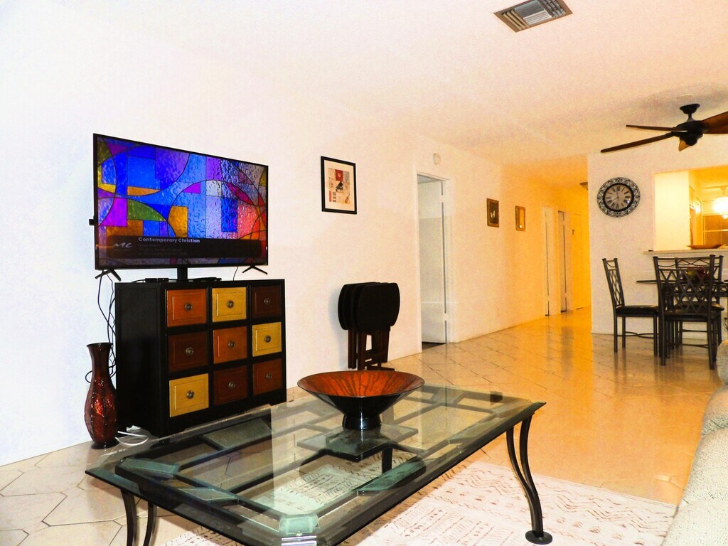 Seasonal lease -Short term rental $3,100 per month, 4 months minimum plus tourist tax or $1,900 per month for annual lease. Offered furnished/turnkey. Comfortable corner apartment on the second floor with views of the lake, canal, and green area, in the 55+ community of Palm Greens. Principal and guest bedrooms both with views of the green area, canal, and lake. Laminate flooring, 2 bathrooms, one completely remodeled. Spacious living/dining room with ceramic flooring, enclosed balcony with screen door. New air conditioning, water heater, dishwasher, and microwave. The new Palm Greens clubhouse is nearing completion. Close to shopping, 15 minutes from downtown Delray and the beach. Includes basic cable, internet, and water