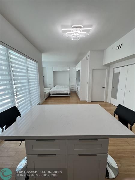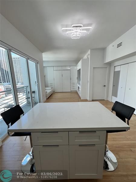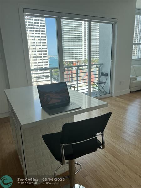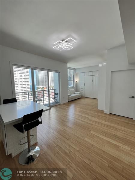 Fully Furnished & Equipped Modern Studio In The Heart of Miami! Can also be rented for short-term. In-unit washer/dryer included, Rent includes: Cable TV, high-speed internet, water, trash, all amenities. Prime Miami location! South Beach, Brickell, Bayside Mall, and FTX Arena. Whole Foods 3 blocks away. All Access: to rooftop pool and jacuzzi, Fitness Center & Sauna (Top Floor), Olympic-style pool, BBQ Grill (1st Floor), Billiard/media room (2nd floor). The unit has a 75†Samsung TV, New Refrigerator, New appliances Custom built queen size Murphy bed custom closet storage and drawers, Spacious custom storage closet in living room with shoe rack and shelves. The kitchen Offers Large Cabinets and a kitchen island with storage cabinets.