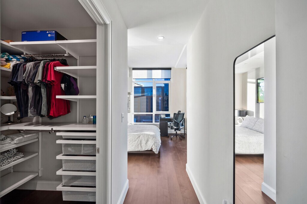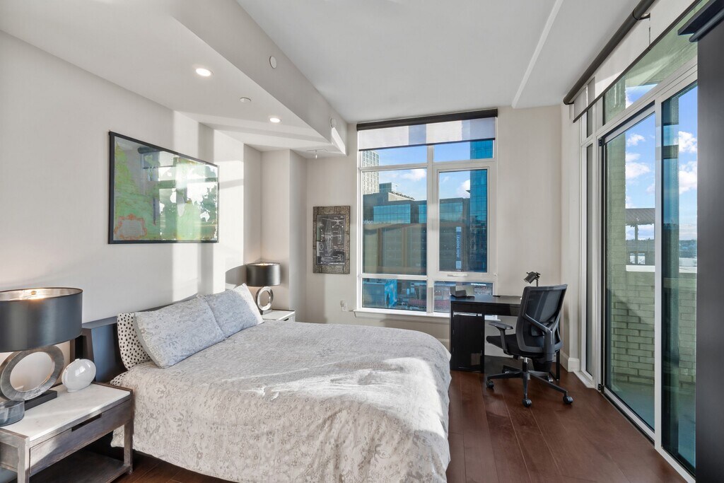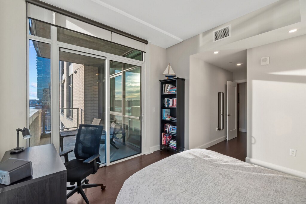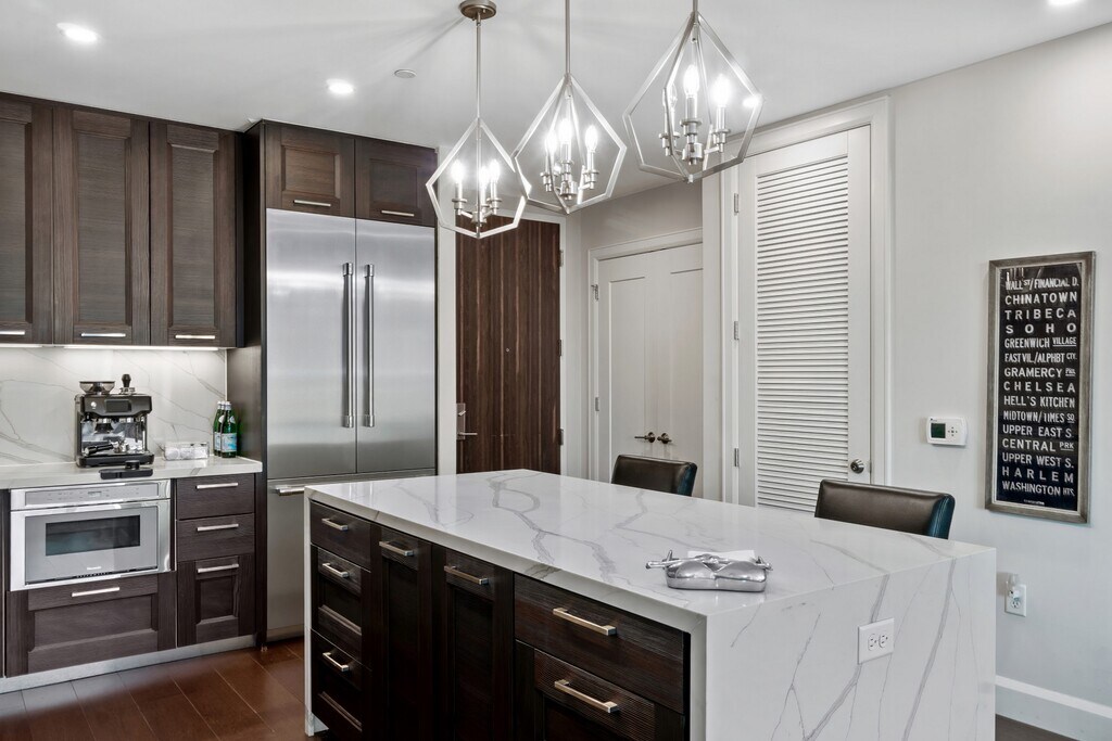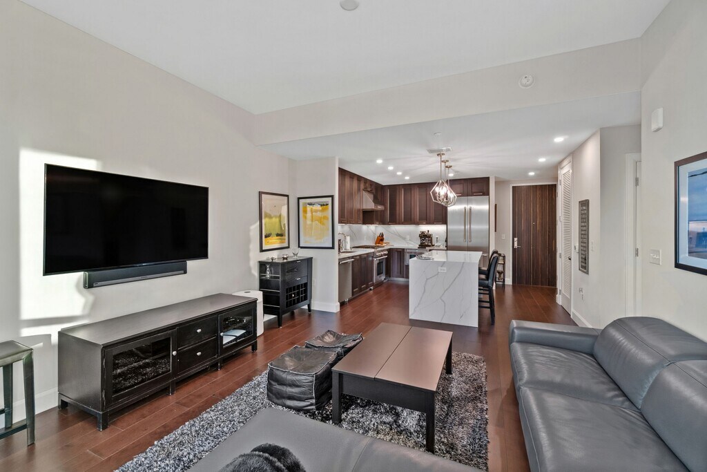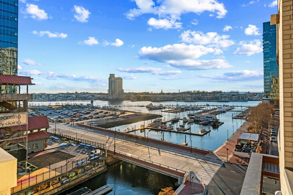 Welcome to luxury living at the Liberty Harbor East, one of Baltimore's premier waterfront addresses. This spacious 1-bedroom 1-bath residence on the 6th floor offers 900 square feet of beautifully designed living space with 9-foot ceilings, wide-plank hardwood floors, and floor-to-ceiling windows showcasing the city's harbor views. The open kitchen features custom Italkraft cabinetry, Thermador appliances, a gas range with vented hood, and a striking marble waterfall island that flows into the living area - perfect for both relaxing and entertaining. The primary suite includes a walk-in closet and spa-like bathroom finished in Carrara marble with an oversized shower and dual vanity. Enjoy the private balcony for morning coffee or a peaceful evening taking in the harbor views. The Liberty is a boutique luxury condominium with just 33 residences, located directly above a flagship Whole Foods Market and surrounded by a wonderful variety of restaurants and shops. Residents will also enjoy access to over 30,000 square feet of private, state-of-the-art indoor and outdoor amenity spaces including a clubroom with indoor/outdoor bar, rooftop infinity pool deck with cabanas, courtyard seating, grilling stations, communal and private dining rooms with catering kitchen, fitness center, yoga studio, pet park, conference rooms, and study lounge with computer stations and fireplace. This superb location gives easy access to all areas of the city as well as 95/295 /895 for a smooth commute. This property includes a parking space in the attached garage.
