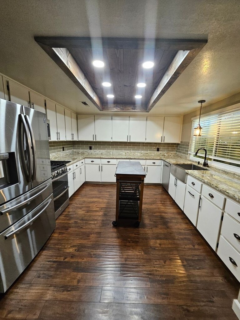 Experience refined living in this 2-bedroom, 2-bathroom home with a den, offering approximately 1,844 sq. ft. of well-designed space. The property features a spacious living room and dining area with an atrium, perfect for entertaining or enjoying natural light throughout the day. The kitchen is equipped with all stainless-steel appliances, including a gas stove and disposal, complemented by granite countertops for a modern, sophisticated touch. Enjoy the convenience of interior laundry with washer and dryer included, central heat & air, shutters, LVP flooring, and dual-pane windows. Step outside to a low-maintenance backyard with patio, ideal for relaxing or outdoor gatherings, and take advantage of the 2-car garage with opener. Garbage service is included in the rent, making monthly living even simpler. Please note, this is a non-smoking property. This property is professionally managed by Valley Fair Realty; apply online at: