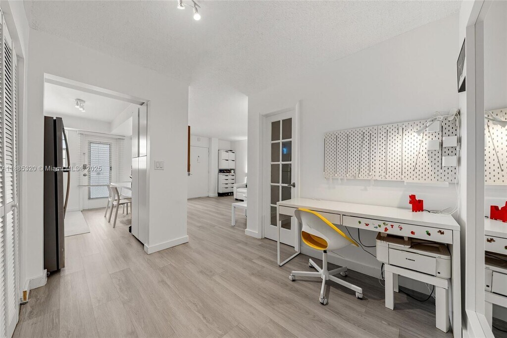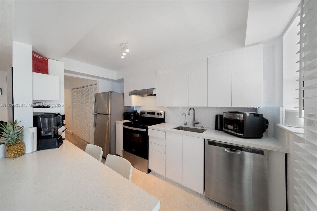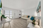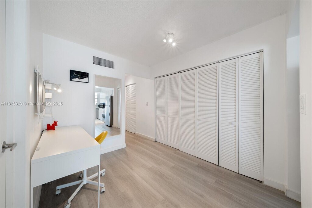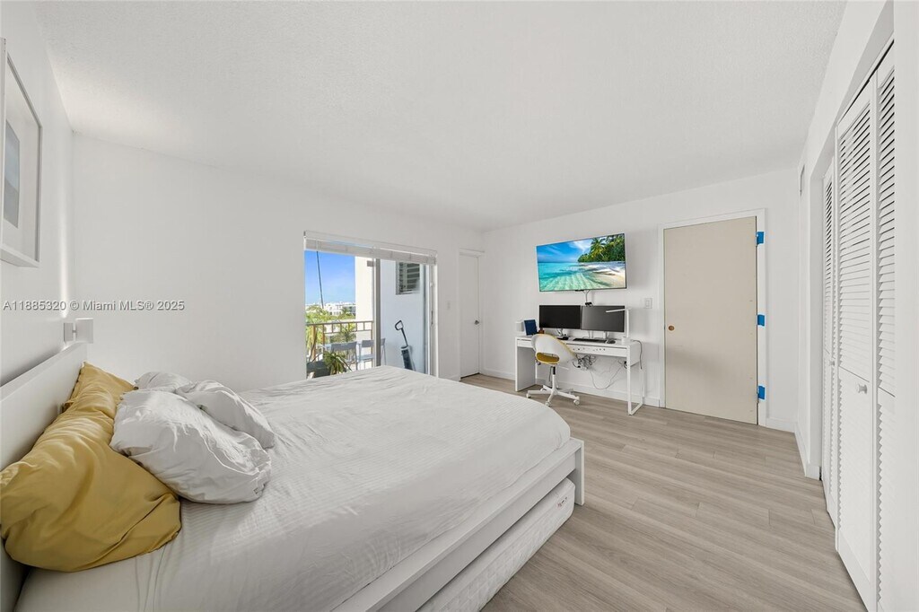 Brand new fully renovated 2 BD, 1.5 BA condo that combines contemporary design with functionality. The layout boasts abundant natural light from large south facing windows w/ light flooring throughout. Highlighting sleek finishes, the kitchen features quartz countertops with a center waterfall island, custom white cabinetry with brass hardware, and high-end LG stainless steel appliances. The living room is inviting with a convenient built-in TV mount, and adjacent to it is a flex bedroom enclosed with striking glass walls offering versatility—perfect for an office, studio, or guest space. The spacious primary offers large built out closets with a private balcony over looking Lincoln Rd. Be the first to live in this renovated property.