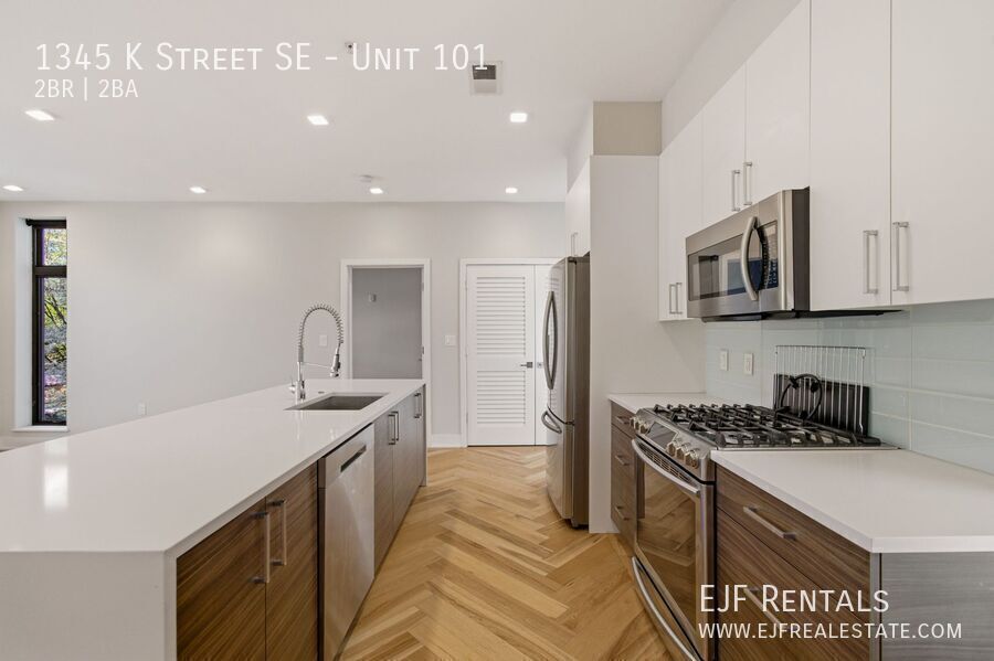 Address: 1345 K Street SE Unit 101 Washington, DC 20003 Neighborhood: Capitol Hill Market Rent: $3,750 for a 19-24 Month Lease OR $3,900 for a 12 Month Lease Utilities Included: Gas, Water, Sewer, & Trash Tenant Responsible for: Electricity, Cable, Internet, & Phone Parking: One Off Street Parking Space Included Pets: Yes, Case By Case Square Footage: 1,067 Square Feet Available: Now! Stunning modern 2 Bed 2 Bath unit in Capitol Hill. This beautiful property which sits high above street level has been lovingly maintained by its owners and looks like new construction. Assigned Parking with an electric charger is at the rear of the property! This unit features Herringbone hardwood floors, and large windows throughout. The kitchen has stainless steel appliances, dishwasher, and a 6-burner stove and laundry. A peaceful deck for a morning coffee or glass of wine looks out over the internal courtyard. The living space offers floor to ceiling windows, motorized shades and space for a large dining table plus sofa and TV space. Open to the large kitchen island - this is perfect for entertaining. The primary suite has ample space, roller shades, well-proportioned closets and a calming en-suite bath featuring double vanities and large shower. The second bedroom provides wonderful light, motorized shades and is attached to a dual entry full bath with tub for guests or tenants alike. This boutique building boasts a nicely appointed rooftop deck and elevator access. Located in an amazing walkable neighborhood, just steps away from the Potomac Ave Metro station. Close proximity to grocery stores, The Wharf, Navy Yard and countless restaurants. Bedrooms: Two Bedrooms Bathrooms: Two Bathrooms Amenities: Rooftop, Parking Included, Secured Entrance, Private Porch, & Pets Welcomed Appliances: Stainless Steel Appliances- Range Stove/Oven, Washer/Dryer In Unit Security Deposit: Equal to One Month's Rent Application Fees: $55/Application Resident Benefit Package: $38/Month Move In/Out Fees: Tenant Responsible for All Fees Pet Fees: 1% of Monthly Rent Charged Per Month EJF Rentals 1428 U Street NW, Second Floor Washington, DC 20009 Main Line: Electric Car Charger Pets Welcomed Private Balcony Private Parking Included Roof Deck Roof Top