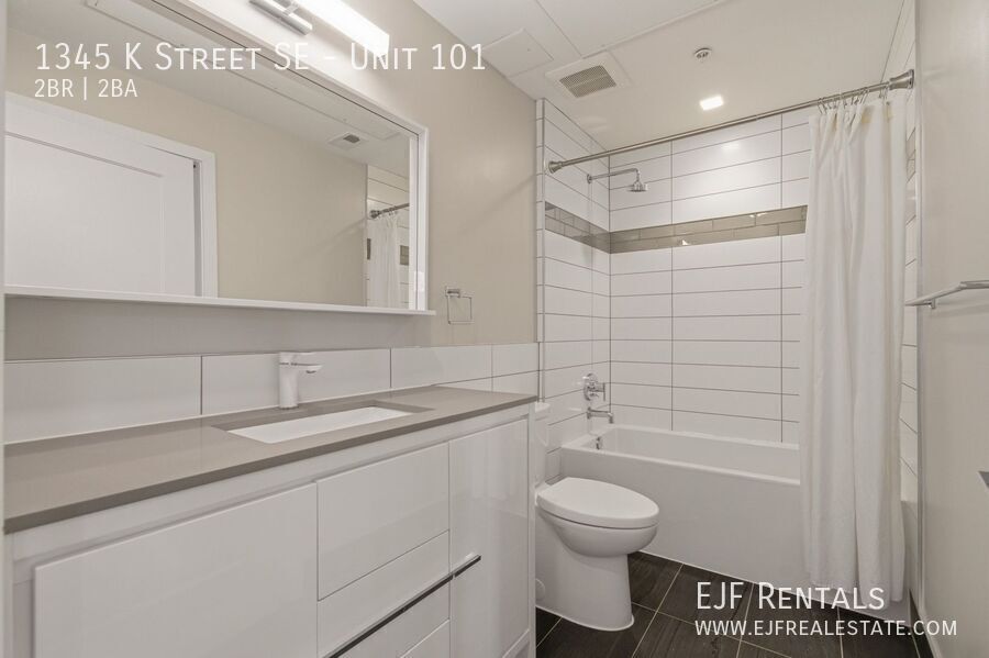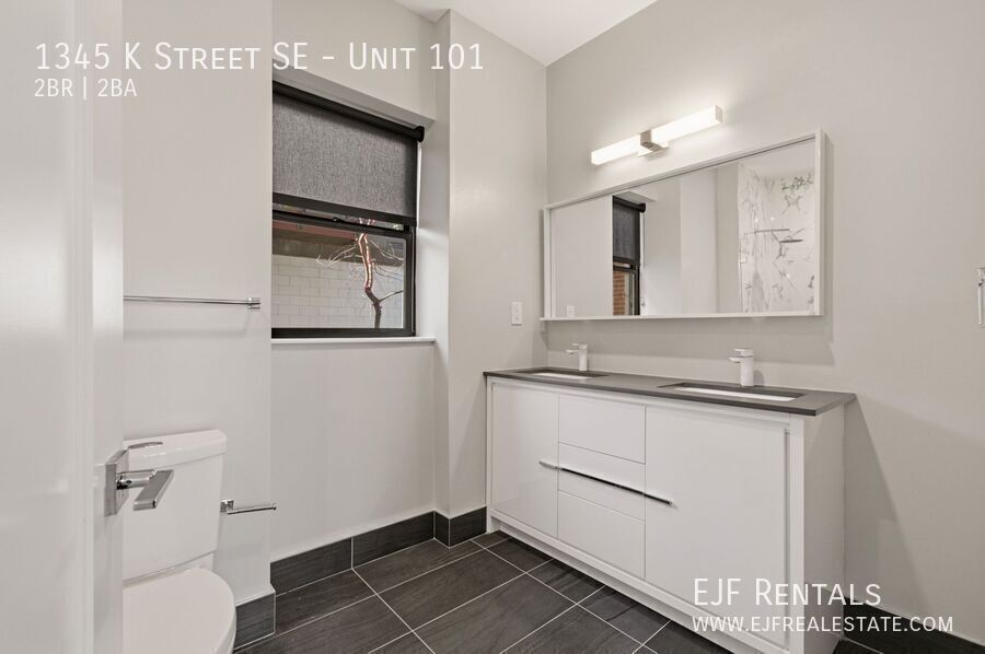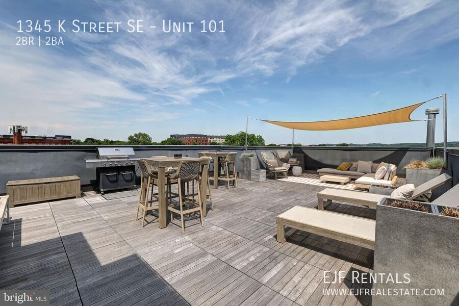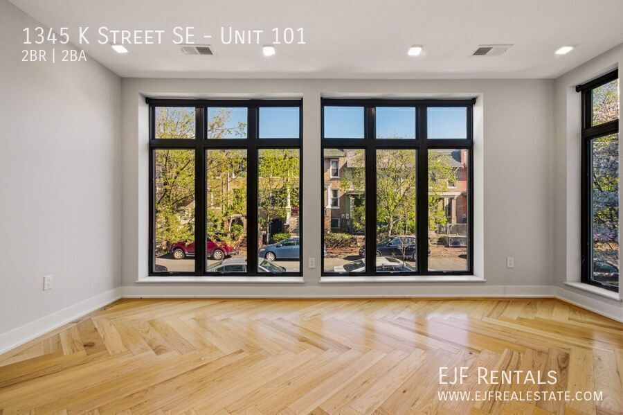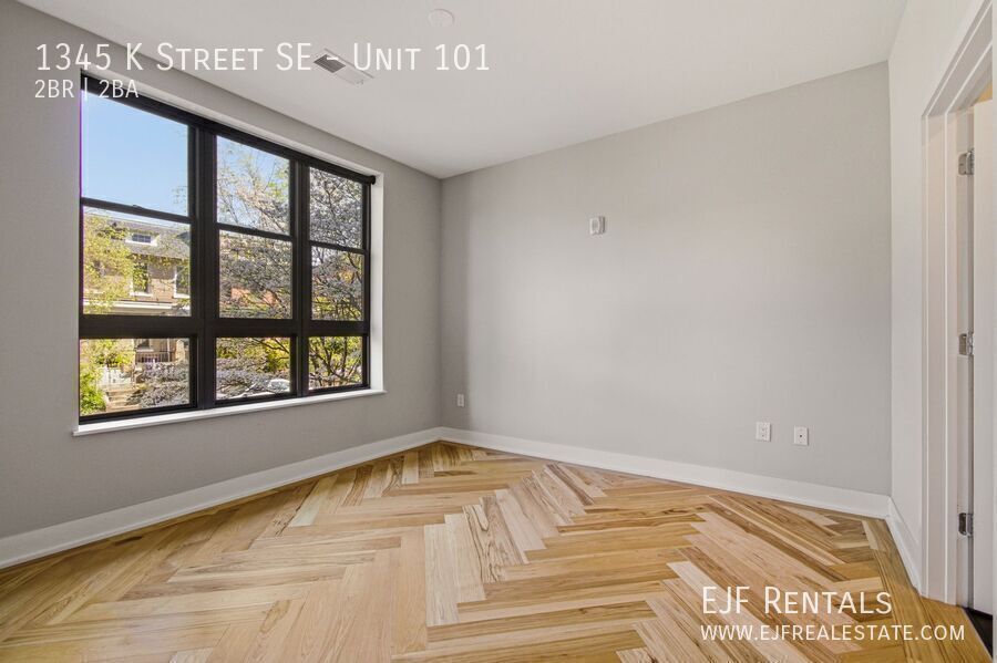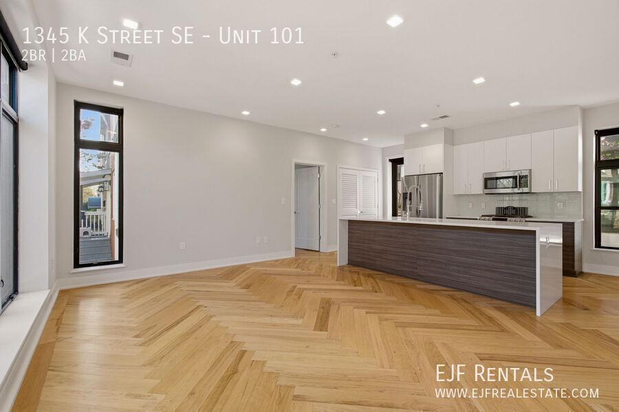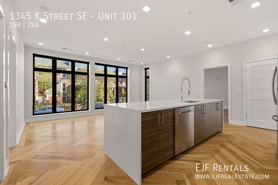 Address: 1345 K Street SE Unit 101 Washington, DC 20003 Neighborhood: Capitol Hill Market Rent: $3,750 for a 19-24 Month Lease OR $3,900 for a 12 Month Lease Utilities Included: Gas, Water, Sewer, & Trash Tenant Responsible for: Electricity, Cable, Internet, & Phone Parking: One Off Street Parking Space Included Pets: Yes, Case By Case Square Footage: 1,067 Square Feet Available: Now! Stunning modern 2 Bed 2 Bath unit in Capitol Hill. This beautiful property which sits high above street level has been lovingly maintained by its owners and looks like new construction. Assigned Parking with an electric charger is at the rear of the property! This unit features Herringbone hardwood floors, and large windows throughout. The kitchen has stainless steel appliances, dishwasher, and a 6-burner stove and laundry. A peaceful deck for a morning coffee or glass of wine looks out over the internal courtyard. The living space offers floor to ceiling windows, motorized shades and space for a large dining table plus sofa and TV space. Open to the large kitchen island - this is perfect for entertaining. The primary suite has ample space, roller shades, well-proportioned closets and a calming en-suite bath featuring double vanities and large shower. The second bedroom provides wonderful light, motorized shades and is attached to a dual entry full bath with tub for guests or tenants alike. This boutique building boasts a nicely appointed rooftop deck and elevator access. Located in an amazing walkable neighborhood, just steps away from the Potomac Ave Metro station. Close proximity to grocery stores, The Wharf, Navy Yard and countless restaurants. Bedrooms: Two Bedrooms Bathrooms: Two Bathrooms Amenities: Rooftop, Parking Included, Secured Entrance, Private Porch, & Pets Welcomed Appliances: Stainless Steel Appliances- Range Stove/Oven, Washer/Dryer In Unit Security Deposit: Equal to One Month's Rent Application Fees: $55/Application Resident Benefit Package: $38/Month Move In/Out Fees: Tenant Responsible for All Fees Pet Fees: 1% of Monthly Rent Charged Per Month EJF Rentals 1428 U Street NW, Second Floor Washington, DC 20009 Main Line: