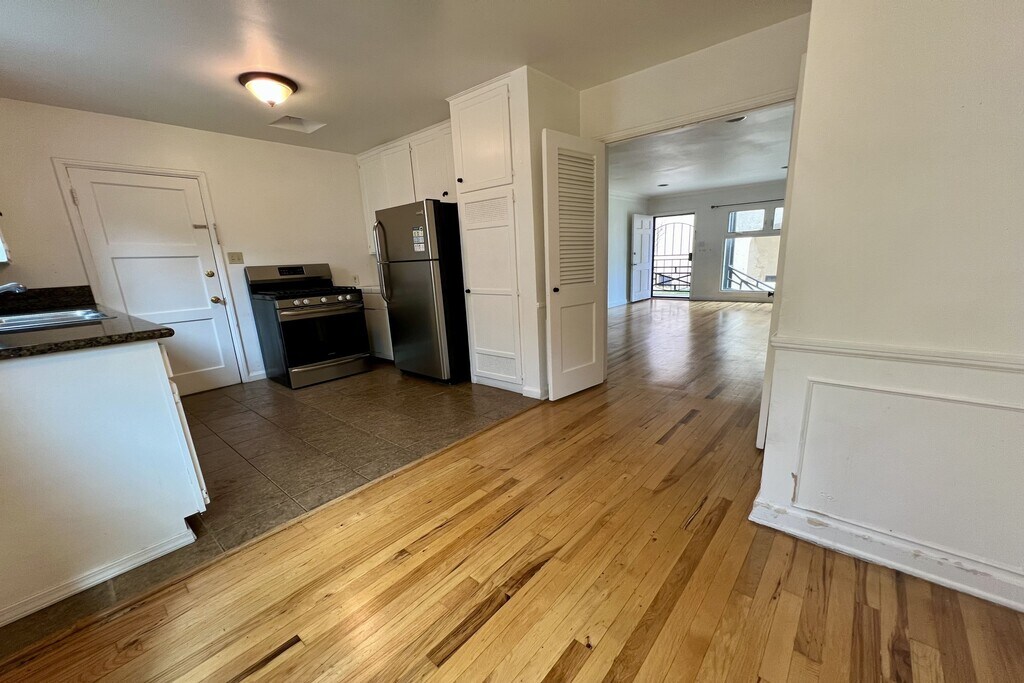 Charming unit in beautiful 4-plex building, located on peaceful tree-lined street. This 1st floor unit has gorgeous hardwood floors, beautiful moldings, double pane windows, AC units, ceiling fans, laundry, etc. The spacious living room has a detailed decorative fireplace, gorgeous crown moldings, 2 closets, built-in shelving & large window for great natural light. The dining area with AC unit and wainscoting flows to the open kitchen with stone countertops and stainless-steel appliances. Off the kitchen in the laundry room, which is shared with only 1 other unit. The hall bathroom has a separate tub & shower, newer white tilework & built-in shelving for linens & storage. Both bedrooms are spacious & equipped with AC units & ceiling fans. The bedrooms are on either side of the bathroom, so do not share walls with each other. Unit also comes with a single parking space within a shared 2-car garage on clicker. Charming curb appeal with marvelous architectural character & new landscaping. Centrally located. Rental Terms: Annual: $2,850 Per Month