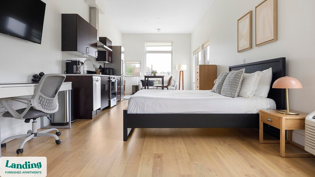 Landing is a top-rated, fully furnished apartment network with thousands of homes across 250+ U.S. cities. With premium amenities, a mobile app to manage your stay, and 24/7 support. Our apartments have everything you need for monthly and longer stays. 6-Month+ Stay base rent: starts at $2500/mo 12-Month+ Stay base rent: starts at $2500/mo Landing's apartments at Studio 135 are designed for comfortable, easy living, with the ability to stay as long as you like. All Landing apartments include: - Fast Wi-Fi - Stylish furnishings - Fully-stocked bathroom - Smart TVs - Comfortable bed - Professionally cleaned - Guest support Stay longer for cheaper! The longer you stay, the bigger your discount. Price advertised is for a 12-month stay, including all utilities and fees, and may vary based on availability. We manage multiple units at this property. While all feature a similar style and furnishings, the layout and specific design elements may vary slightly from the photos provided. Some of the nitty-gritty: a background check and proof of income are required; we're completely smoke-free; pet-friendly options are available; parking is subject to availability.