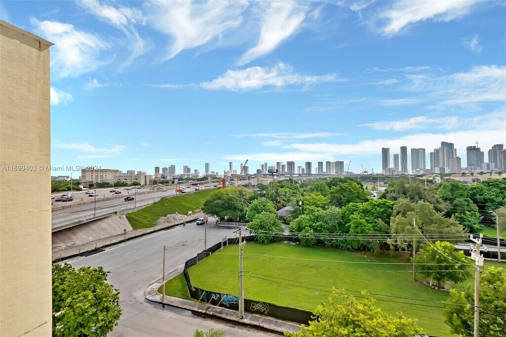 Rarely available 1/1 corner unit in close proximity to major highways, short drive to Downtown and Brickell. Walking distance to Jackson Memorial Hospital, and University of Miami school of Medicine. 10' high ceilings, custom built kitchen cabinets, refrigerator, stacked washer and dryer, several walk-in closets. Granite countertops and tile throughout the unit. The unit features a large balcony wraparound to enjoy the Miami Skyline view; impact sliding glass doors and windows; secure building access wth cameras; swimming pool; andgated covered parking located on first floor of the garage. Pet friendly. Don't miss out on this extraordinary opportunity! Fresh paint, will not disappoint!