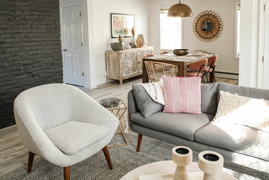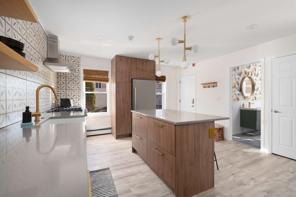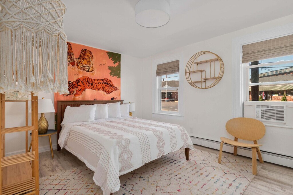 Feel at home in this designer 3-bedroom, 2-bathroom first-floor apartment in Warren, RI, a refreshing retreat in the heart of Historic Downtown Warren that comfortably accommodates up to 6 guests. This stylish apartment blends modern design with historic New England charm. Inside, you’ll find a fully stocked European-style kitchen with high-end stainless appliances, a large refrigerator, ample cabinetry, a Keurig and drip coffee maker, and cooking space. The spa-inspired bathrooms feature plush towels and premium essentials. Relax in the living room with a 55” Smart TV, plush sofa, and open floor plan. Each of the three bedrooms offers plush, cloud-like bedding. Kick back for a movie on the HDTV with Roku, or set the vibe with the Bluetooth sound system. Guests also have access to a beautifully designed shared spa area located on the ground level with an 8-person hot tub, fire pit, sauna, and outdoor shower. Enjoy your patio, perfect for laid-back evenings. Free in-unit laundry is available for total convenience. Up to 2 dogs are allowed for a fee of $125 per stay. This unit accommodates one car and shares a tandem parking spot with the neighboring unit. Please coordinate with your fellow guests if you need to move vehicles. A high chair and pack 'n play are available. Just steps from the junction of Water on Main, and Water Street’s vibrant restaurants, waterfront boutiques, and local attractions, this space is your ideal spot to relax, recharge, and explore. You’ll love being close by Providence and Newport, giving you the best of city charm and coastal beauty. Nearby attractions include Warren Town Beach (0.9 mi), Barrington Beach (2.3 mi), Burr’s Hill Park (0.6 mi), Touisset Marsh Wildlife Refuge (3.5 mi), and Downtown Warren (0.1 mi). This apartment is located in a lively, vibrant part of town, so you may hear the usual sounds of city life from time to time. The building includes four separate units, which means there may also be light noise from neighboring guests. This is a historic property, and some of the stairways are naturally narrow and steep, so please use caution when navigating them. Due to the age and character of the home, the doors may stick slightly during warmer months. No parties are allowed and violations may result in immediate termination of the stay. Failure to follow parking instructions may result in an additional fee. Check-in is at 4pm and check-out is at 10am. We kindly ask that your dog is crate trained and that you pick up after your dog. Guests must be 21 years or older to book this property. Includes a dedicated workspace and high-speed Wi-Fi. [SI]