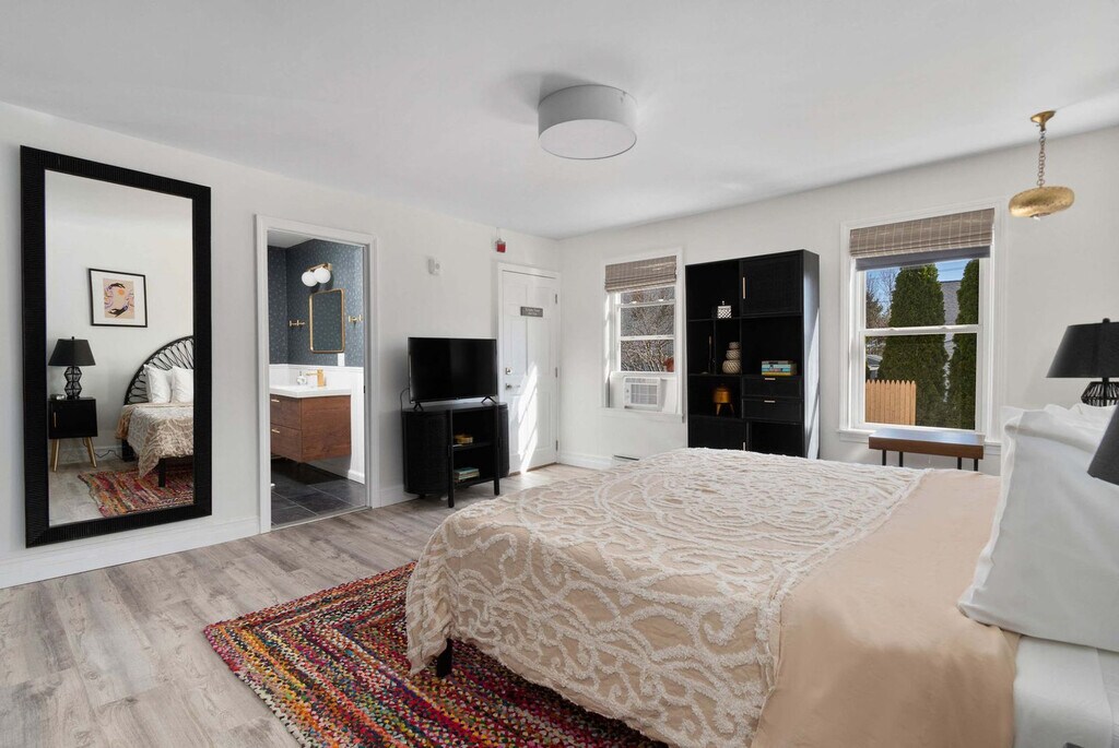 Feel at home in this stylish 1-bedroom, 1-bath apartment, the perfect Marshlands retreat in Downtown Warren, RI, ideal for couples or solo travelers looking to relax and explore. This restorative first-floor retreat is within walking distance of Water Street dining, shops, and the waterfront. This bright, open-concept living space features a fully stocked kitchen with high-end stainless appliances, a large refrigerator, ample cabinetry and cooking space, and a coffee maker (Keurig and drip). The living room includes a 55” smart TV and plush sofa and seating. Guests also have access to a beautifully designed shared spa area located on the ground level with an 8-person hot tub, fire pit, sauna, and outdoor shower. There is also an outdoor patio. Up to 2 dogs are allowed for $125 per stay, no cats please. Guests are not allowed to park in the driveway and failure to follow parking rules may result in an additional fee. This unit accommodates up to two cars and parking locations will be provided with your check-in instructions. Located in a lively, vibrant part of town, you may hear the usual sounds of city life from time to time. Nearby attractions include Warren Town Beach (0.9 mi), Barrington Beach (2.3 mi), Burr’s Hill Park (0.6 mi), Touisset Marsh Wildlife Refuge (3.5 mi), and Downtown Warren (0.1 mi). The building includes four separate units, which means there may also be light noise from neighboring guests. This is a historic property, and some of the stairways are naturally narrow and steep, so please use caution when navigating them. Due to the age and character of the home, the doors may stick slightly during warmer months. No parties are allowed and violations may result in immediate termination of the stay. We kindly ask that your dog is crate trained and that you pick up after your dog. Guests must be 21 years or older to book this property. Check-in is at 4pm and check-out is at 10am. Includes a dedicated workspace with a comfy desk set-up and high-speed Wi-Fi. Registration Number: RE.00521-STR [SI]