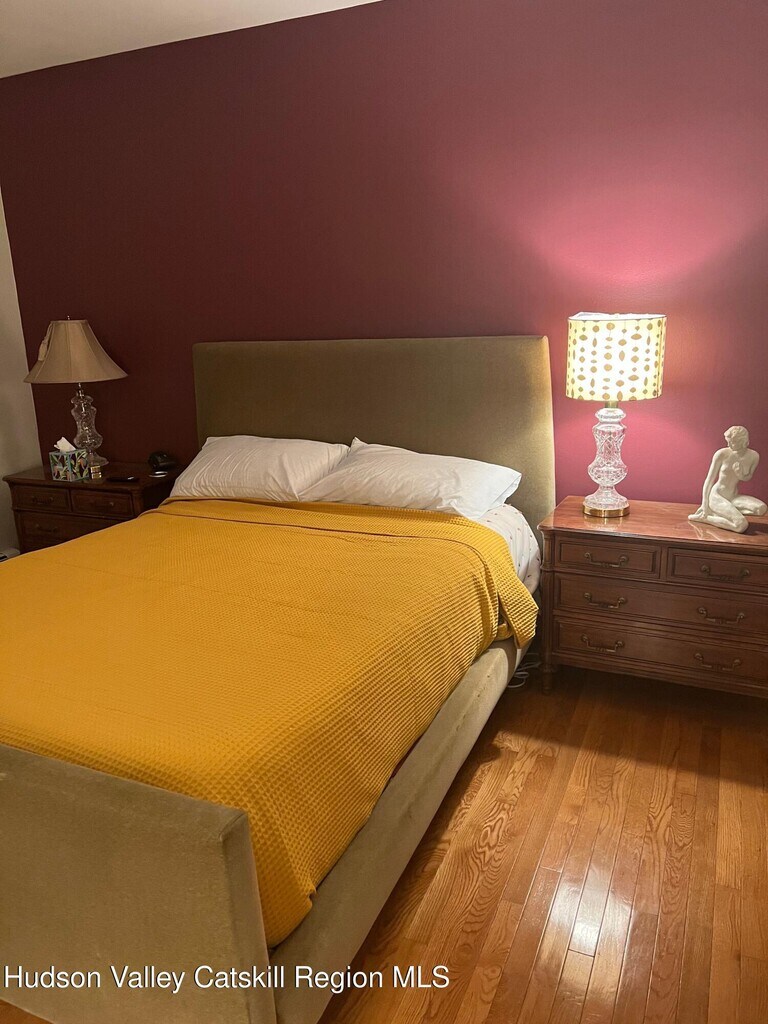 Fully furnished seasonal rental in desirable New Paltz. Spacious,well-appointed 2-bed first floor condo is tastefully decorated in an eclectic mid-century vibe,with authentic mid-century furnishings and artwork. Just bring your clothes and toiletries everything else is included! The living room is vast and boasts a genuine mid-century Nelson omni wall unit with an extensive library,bar,and display space for your items. It is furnished with a new and comfortable crate and barrel sofa,two overside comfortable chairs,a coffee table,and a credenza with a hidden compartment for items you want to be extra secure with and extra storage space. it also sports a DVD player and a 55-inch large-screen smart tv. The large windows provide a bright and sunny living space. There are two spacious bedrooms,each with a closet and storage space. Each bedroom has dressers and nightstands. The bedroom spaces will give you a beautiful and comfortable night's rest. There are duvets in each room; you can choose either an all-season down insert or a down alternative. We also supply the same choices with the pillows,down or down alternatives. There are quality percale sheets,duvet covers,and extra blankets. One bedroom has a Tempurpedic queen size bed,and the other has a pillow-top king bed. Blackout shades are provided. The spacious bathroom has a glass-enclosed tub,shower tower with spray jets,rain showers,and hand-held shower massager. It is well stocked with fluffy towels,mats,and ample storage. The dining room can easily fit four around the table or open it up for guests,and it will fit eight or more. There is a full kitchen with everything a cook could want open to the dining room and living room. It contains a large stainless steel refrigerator,dishwasher,and a four-burner range. There is a coffee pot,an expresso pot,a milk frother,an electric tea kettle: An instant pot,an air fryer,a crock pot,a pantry and so much more. There is a laundry room on the premises and an assigned parking space outside your door. This is seasonal but can be year round if needed. Directions: 299 west to 32 north on right. Based on information submitted to the MLS GRID as of [see last changed date above]. All data is obtained from various sources and may not have been verified by broker or MLS GRID. Supplied Open House Information is subject to change without notice. All information should be independently reviewed and verified for accuracy. Properties may or may not be listed by the office/agent presenting the information. Some IDX listings have been excluded from this website. Prices displayed on all Sold listings are the Last Known Listing Price and may not be the actual selling price.