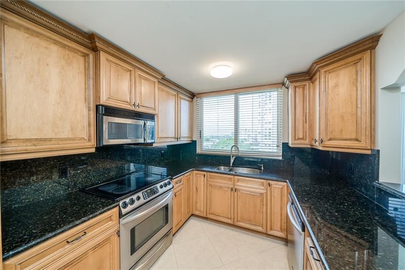 LIVE DIRECTLY ON THE BEACH in this 2 bedroom 2 bathroom OCEAN VIEW unit, featuring 2 balconies and floor to ceiling HURRICANE IMPACT windows throughout the open concept unit. Entire unit just painted with high quality paint. Large kitchen has rich Maple cabinets and pass-thru archway overlooking the living room & ocean views. Newer appliances w/ in-unit Washer/Dryer! AC system serviced every 6 months. New Delta faucets, garbage disposal & remote-controlled ceiling fans. Newly renovated OCEAN SIDE pool, Jacuzzi and re-paved pool deck. Private stairway w/electronic re-entry badge access goes directly to the sand. This property offers a large modern fitness center, community areas w/new natural gas BBQs and 24/7 security. One assigned underground parking space w/additional guest parking.