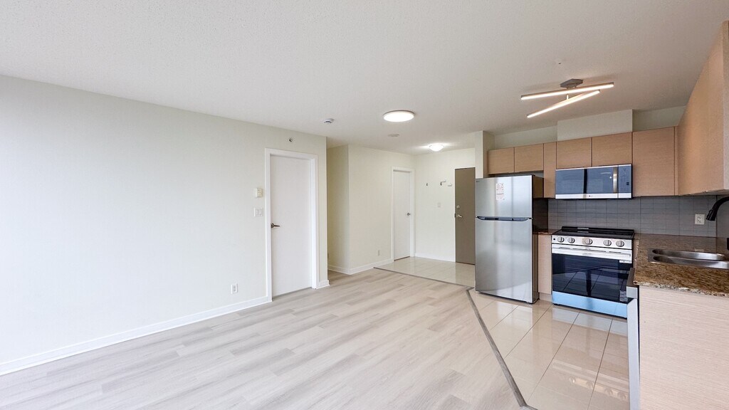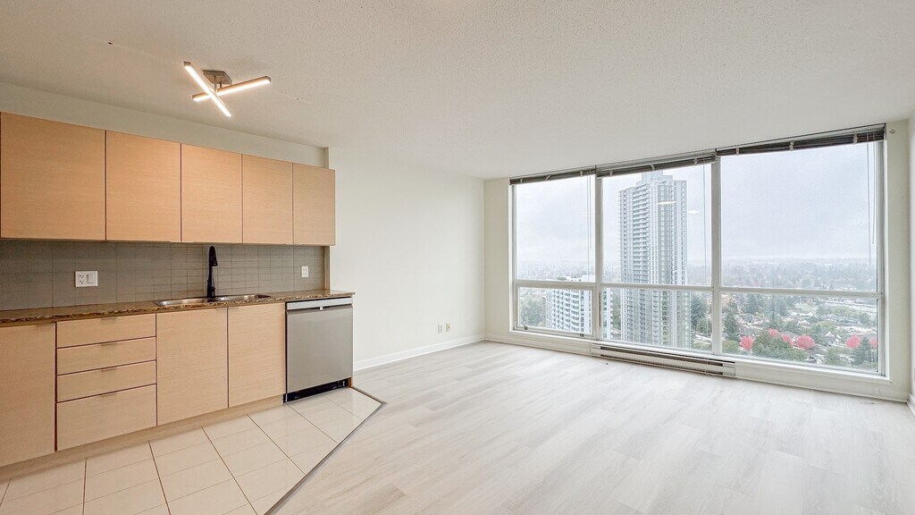 Welcome to urban living at its finest! This beautifully updated one-bedroom condo offers unbeatable convenience and modern comfort. Located just steps from the SkyTrain, top-tier shopping, and vibrant dining options, you’ll enjoy seamless access to everything the city has to offer. Bright and spacious layout with stunning city views, brand new laminate vinyl flooring throughout, sleek kitchen with new stainless steel appliances, quiet, well-maintained building in a highly walkable neighborhood. Don’t miss your chance to live in a location that truly has it all.