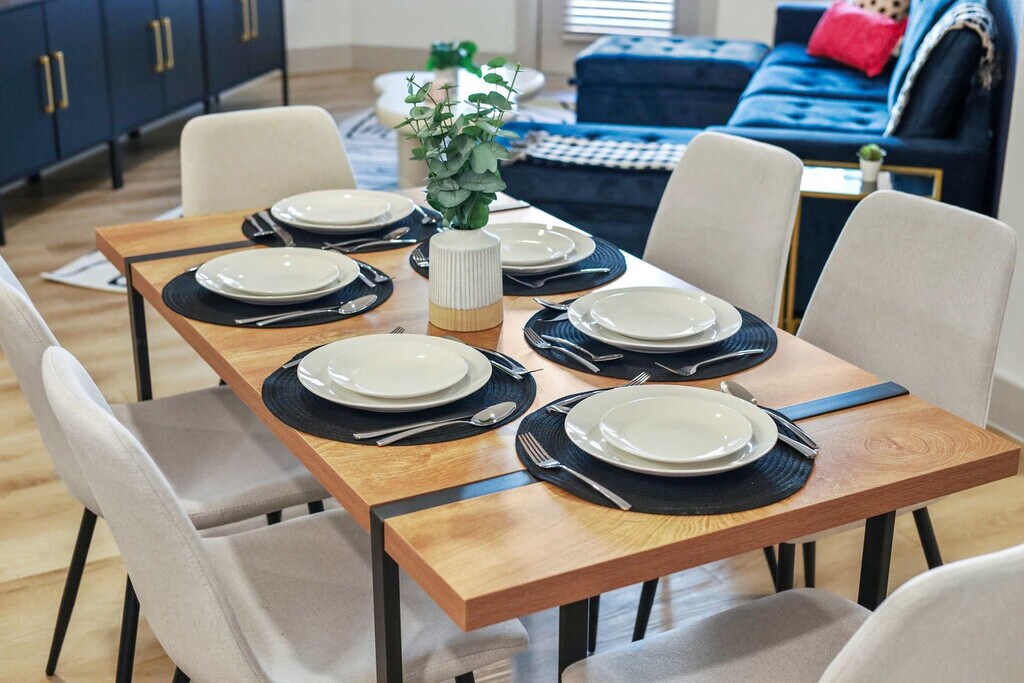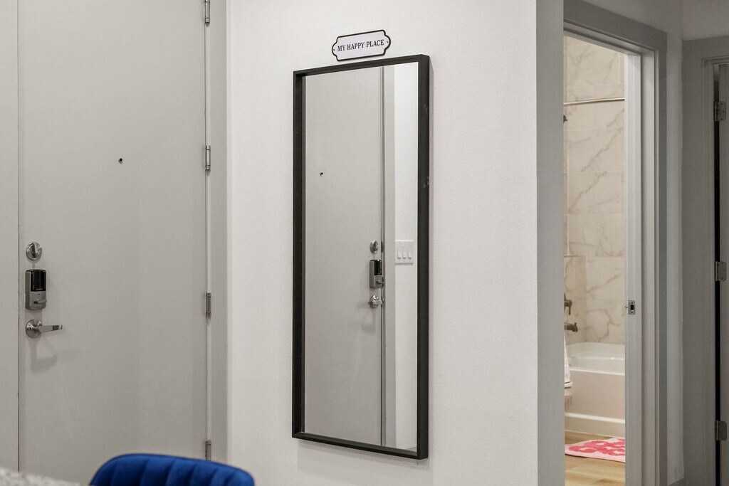 Feel at home in this stylish 2-bedroom unit located in a secure gated community in Midtown Dallas. This modern apartment, perfect for up to 6 guests, offers a fully equipped kitchen with cooking essentials, a large living area with a big TV, high-quality linens and plush bedding, clean modern bathrooms with fresh towels and toiletries, and a washer/dryer. Building amenities include a fully equipped gym and a residents’ club with games, a TV, and a lounge area. Enjoy the pool, courtyard, and balcony for relaxing evenings. Private gated parking is available on-site through an easy-to-use app. Centrally located in Dallas, this apartment offers convenient access to shopping, dining, and entertainment. Stroll to cafes, take a short drive to Galleria Dallas, or visit nearby attractions such as Celestial Park, Addison Circle Park, the Dallas Museum of Art, and the Dallas Arboretum and Botanical Garden. The neighborhood is close to restaurants like Shakertins, The Nest Craft, and Sahara Mediterranean Restaurant, as well as hospitals like Dallas Medical Center and Medical City Dallas Hospital. Pets are not allowed on the property under any circumstances. Loud music or excessive noise is not permitted at any time, and guests should be mindful of neighbors and maintain a peaceful environment. Do not tamper with the security cameras or noise aware devices. Any damage or misuse of the unit and building amenities will incur additional charges. Includes fast Wi-Fi and a dedicated workspace for remote work. [SI]