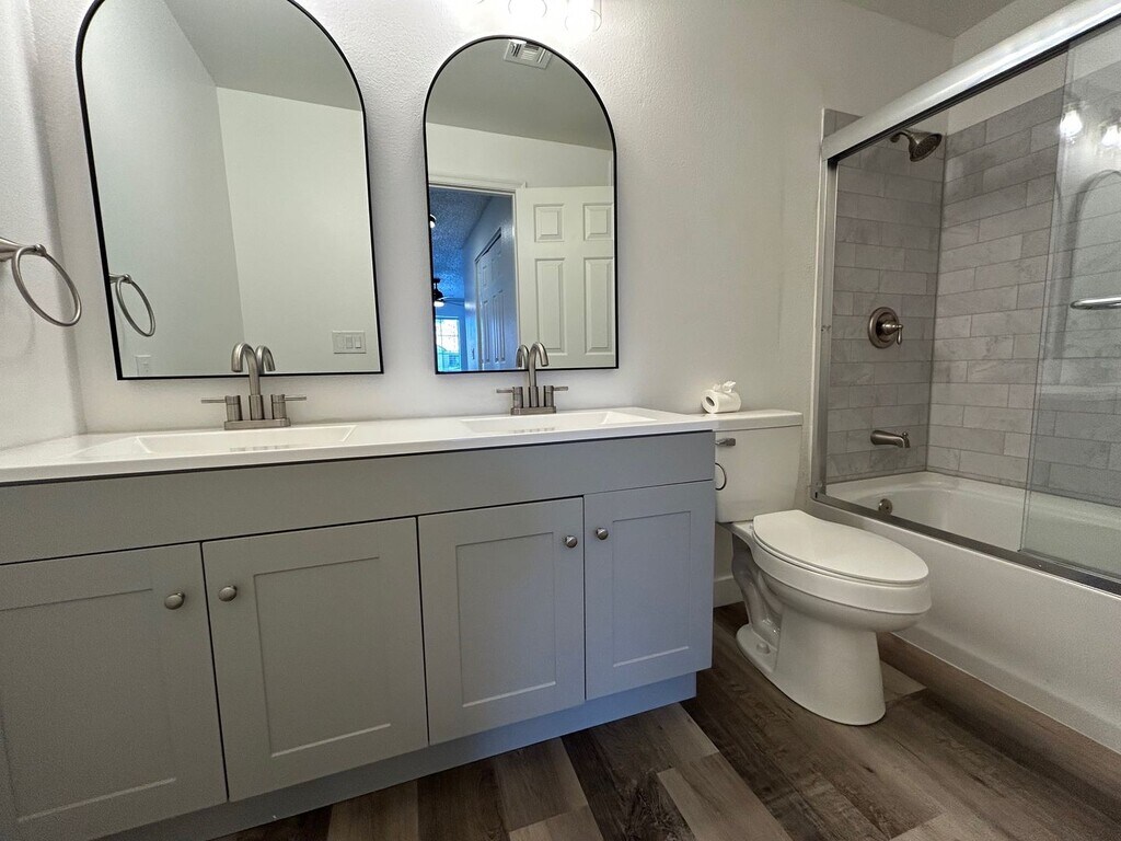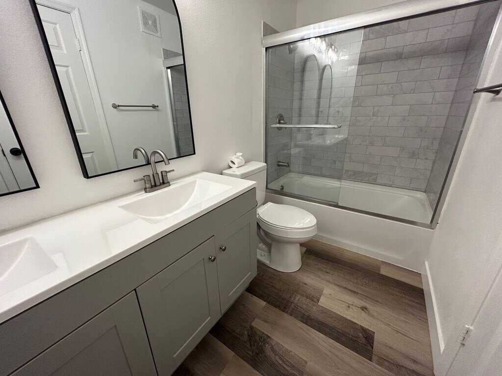 HABLAMOS ESPAÑOL! WELCOME TO YOUR NEW HOME AT 1375 E HACIENDA AVE! THIS 1,090 SQ. FT. SECOND-FLOOR CONDO FEATURES AN OPEN FLOOR PLAN WITH PLENTY OF NATURAL LIGHT. RELAX IN THE COZY LIVING ROOM WITH A GAS FIREPLACE AND BRAND-NEW CEILING FAN, PERFECT FOR ENTERTAINING OR UNWINDING AFTER A LONG DAY. ENJOY BRAND-NEW VINYL PLANK FLOORING THROUGHOUT AND BEAUTIFULLY UPGRADED BATHROOMS. THE FULLY EQUIPPED KITCHEN OFFERS AMPLE CABINET SPACE, SPACIOUS COUNTERTOPS, AND A BREAKFAST BAR WITH STAINLESS STEEL APPLIANCES, INCLUDING A REFRIGERATOR, OVEN, HOOD FAN, AND DISHWASHER. THE PRIMARY BEDROOM INCLUDES A LARGE WALK-IN CLOSET AND A PRIVATE BALCONY ENTRANCE. BOTH BATHROOMS FEATURE BRAND NEW MODERN FIXTURES AND PLENTY OF STORAGE. ADDITIONAL AMENITIES INCLUDE AN IN-UNIT WASHER AND DRYER, CENTRAL AIR CONDITIONING, AND ASSIGNED COVERED PARKING. THE COMMUNITY FEATURES A SWIMMING POOL, AND WATER AND TRASH ARE INCLUDED IN THE RENT. CONVENIENTLY LOCATED NEAR SHOPPING, DINING, PUBLIC TRANSPORTATION, AND JUST MINUTES FROM THE LAS VEGAS STRIP, UNLV, AND HARRY REID INTERNATIONAL AIRPORT. DON’T MISS OUT ON THIS FANTASTIC RENTAL OPPORTUNITY! CONTACT US TODAY TO SCHEDULE A VIEWING. HABLAMOS ESPAÑOL! POR FAVOR, LLAME PARA MÁS DETALLES. BRADY REALTY GROUP: ** FYI: 3D TOUR DOES NOT REFLECT CURRENT REMODELED BATHROOMS!