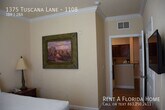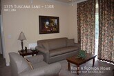 Fully Furnished First-Floor Condo in Tuscana Resort – Included are water,basic cable,and basic internet. Nestled in the heart of Champions Gate,this superb 3-bedroom,2-bathroom condo offers a unique opportunity to rent in the highly desirable gated community of Tuscana. The open concept living and dining area welcomes you with tasteful décor,a combination of laminate and carpet flooring,and ample natural light. The kitchen is equipped with elegant cherry wood cabinetry,granite countertops,and a full set of modern appliances—perfect for effortless living or entertaining. The master suite features a king-sized bed,walk-in closet,and a private bathroom with a stand-up shower. The two secondary bedrooms are equally well-appointed,one with two twin beds and the other with a queen,while the shared bathroom includes a tub/shower combination. Step outside to your private screened-in patio and enjoy peaceful views of the surrounding trees and nature,creating a tranquil escape right at home. Residents enjoy access to Tuscana’s luxurious resort-style amenities,including a heated pool and spa,fitness center,children's play area,on-site theater,and a playground—all just minutes from Publix,restaurants,shopping,golf,and major attractions. Don’t miss your chance and schedule an appointment today.