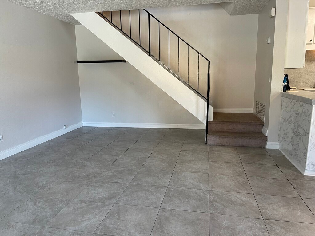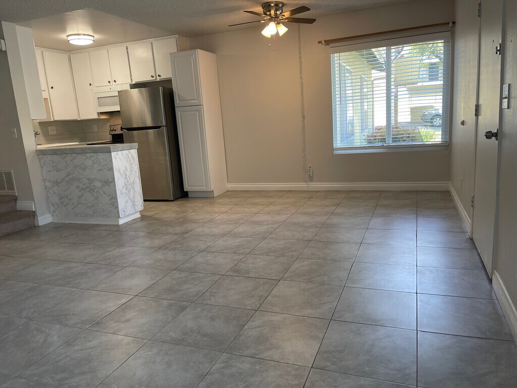 Quiet location, 2 story condo, vinyl flooring upstairs, large tile downstairs. 1 car garage plus a driveway is a must. Open floor plan, lots of cabinet space and direct access to dining area and living room/ a formal dining area with lighted ceiling fan. Spacious living room. Poway Unified School district with bus transportation easy access. Elementary school within walking distance. Dual pane windows. Owner pays for water, sewer and trash. This condo is a must see. Please call to schedule a viewing. Pat