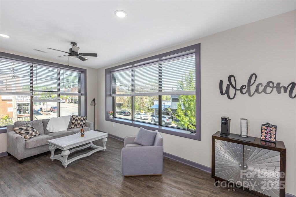 Newly remodeled luxury apartment in beautiful downtown Marion. Fully furnished and ready for you. Step outside onto picturesque Main Street,which offers a vibrant variety of shopping,dining,and nightlife options,yet it maintains the quiet hometown vibe. High ceilings and large windows provide abundant natural light throughout the apartment and allow you to view the mountains surrounding downtown. All utilities are included in rent. Spectrum high-speed internet is provided as well.