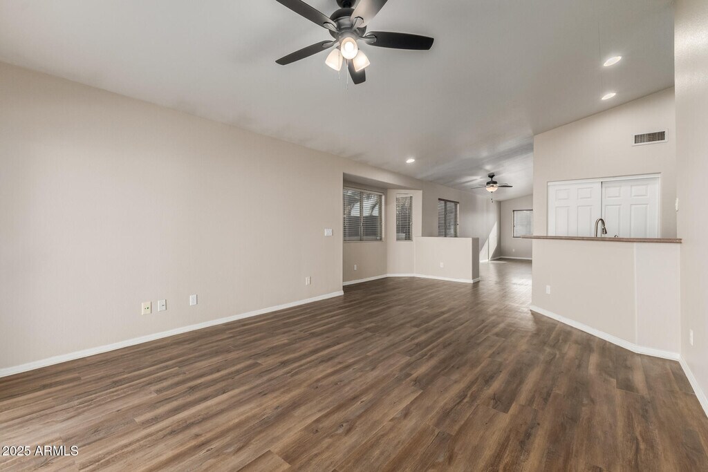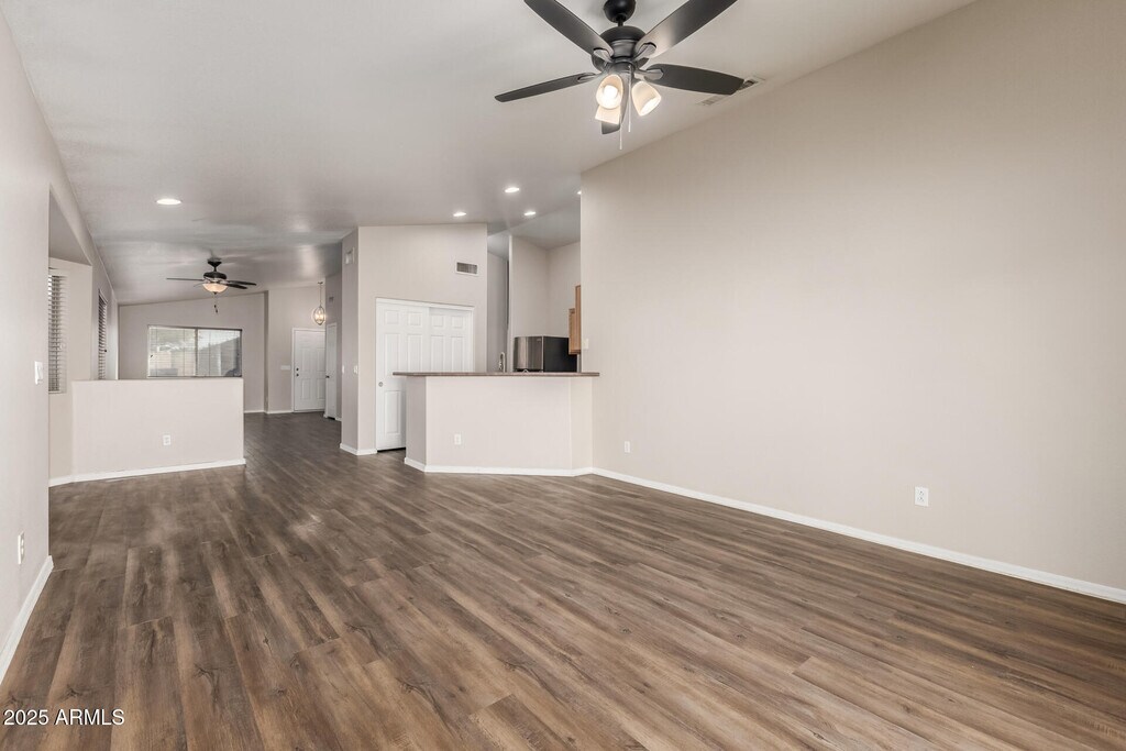 Step inside this inviting 3-bedroom,2-bathroom home offering 1,505 sq. ft. of comfortable living space with vaulted ceilings and an open,airy feel. The fully equipped kitchen features a pantry and breakfast bar,perfect for casual dining or entertaining guests,and flows seamlessly into both a formal living room and a cozy family room. The spacious primary suite is a true retreat with a dual-sink vanity,shower/tub combo,and walk-in closet. Two additional bedrooms share a full bathroom,providing ample space for family,guests,or a home office. Enjoy Arizona living in the private enclosed backyard,complete with a covered patio and room for grass or a play area. Located in the heart of Surprise,you'll be just minutes from top dining,shopping,and entertainment. Catch a Spring Training game at Surprise Stadium,cool off at the Surprise Aquatic Center with its slides and competition pool,or simply relax at home in comfort.