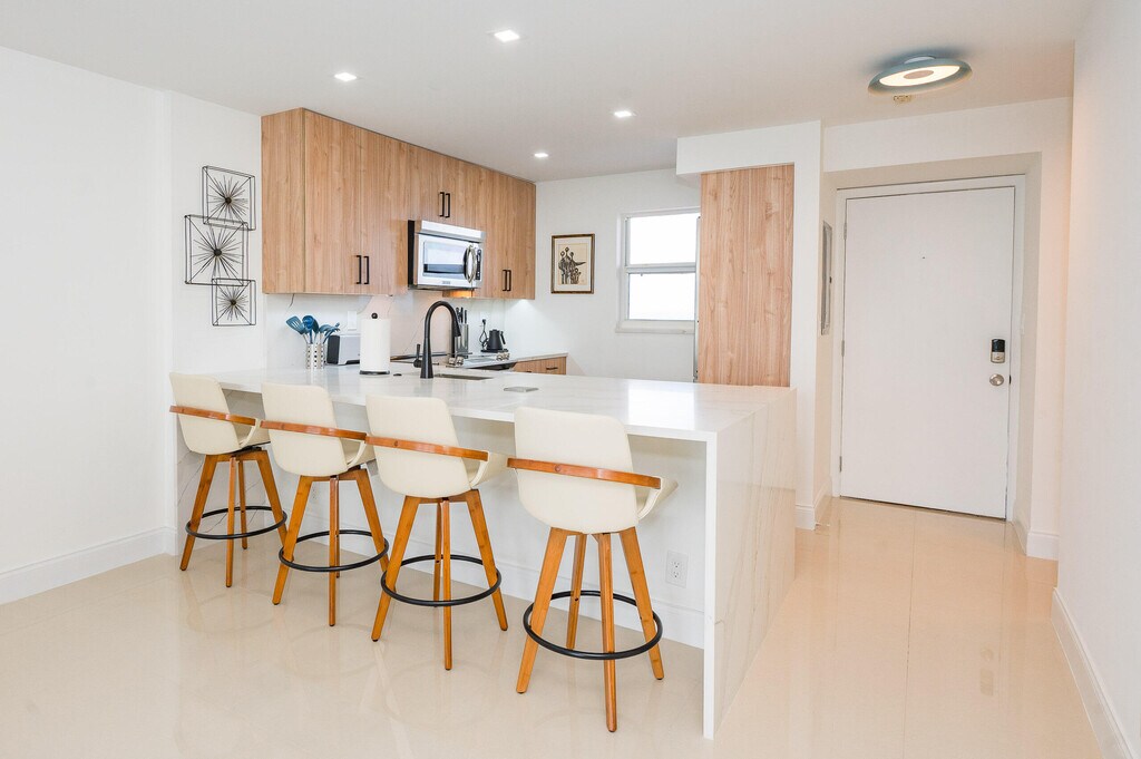 Enjoy private access to one of the best beaches in Pompano. The condo has been completely renovated with luxurious finishes and furnishings. Enjoy a fully equipped kitchen with an ocean view. Living room and bedroom have Intracoastal views and amazing sunsets. Bedroom has a brand new king sized mattress. Assigned parking with plenty of guest parking. Building has a newer pool and lounge chairs. To the North is the Pompano Pier with shops and restaurants, 1.5 miles away. To the South is Lauderdale-By-The-sea,1.8 miles away.
