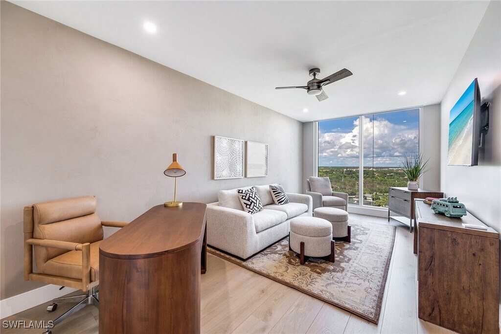 BRAND NEW resort - style living at its finest! The views from this 12th floor,3 bedroom + den/ 4 bath condominium coastal retreat will ASTOUND you! With over 3,000 sf of high-end appointments and decorator touches,you will quickly find yourself melting into the comfortable lifestyle that this classic,costal condo and Kalea Bay exude. Your private elevator opens directly to the great room which offers many opportunities for both relaxing and entertaining. Indulge guests in the formal dining area,at the kitchen bar,or on the 500+ sf lanai where the view will steal the show. The large butler's pantry provides ample space for catering if you choose,but the cooktop is natural gas if you decide to play chef. Or,if you're looking for a relaxing evening,simply gather around the electric fireplace nestled on one of the cozy couches for TV time and/or conversation or pull up a chair and put up your feet on the lanai to watch the sun set. In the back of the condo,overnight guests will enjoy 1 of 2 Guest Suites with city views while the Primary Bedroom faces west to enjoy outstanding sunsets. The primary bath is spa-like with his and hers vanities,a beautiful soaking tub,an over-sized walk-in shower and a separate water closet with a bidet feature. The walk-in closet is a room in itself:) Building amenities are just an elevator ride to the 22nd floor Sky Deck where you'll find a rooftop pool with sun shelves,a large pool deck with lounge chairs for sunning as well as shady areas,an open-air Fitness Center,a Grill Area,and a Sky Lounge for entertaining and community events - all with a panoramic view of the Gulf of Mexico as a backdrop. It's stunning! If you want to kick it up a notch,you can simply walk across the street to Kalea Bay's lakefront Community Center boasting an even larger fitness/wellness center,3 more pools including a kid's wading pool and an adult-only pool,fire pits,an active tennis center offering clinics and lessons,pickleball courts,two open air bars and 2 full-service restaurants. There's even a beauty salon! What about the beach you say? The Kalea Bay shuttle will pick you up and take you to Vanderbilt Beach - just a few miles away. You really can have it all!