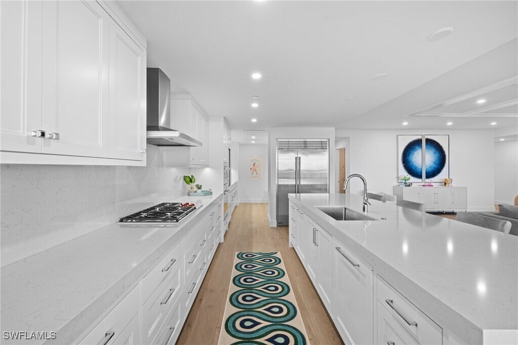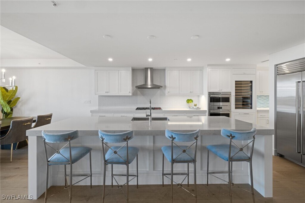 Experience luxury living at its finest in this exquisite 4-bedroom,4-bathroom residence located in the newest tower of Kalea Bay,with spectacular views overlooking the serene Gulf of America in Naples. Step off your private elevator into a stunning foyer that sets the tone for the gorgeous spacious ultra-high-end luxuriously furnished interior. The Chef's Kitchen,adorned with Wolf & Subzero appliances,natural gas range,and quartz countertops,seamlessly blends style and functionality. A well-appointed Butler’s Pantry with wet bar and second microwave serves as the perfect area for preparing and serving meals,simplifying your entertaining needs. The Tower amenities exclusive to residents boast a coveted Sky Deck offering breathtaking,unobstructed views of the Gulf of Mexico and Turkey Bay,and Mangroves—an ideal retreat for relaxation and enjoyment. Residents can indulge in leisurely activities such as lounging by and swimming in the pool,working out in the Fitness Center with panoramic vistas,or unwinding in the lounge area while taking in spectacular sunsets. Residents also enjoy access to a world-class resort-style Club featuring a state of the art Wellness Center,3 Pools including a children’s wading pool and an adult only pool,active Tennis Center and Pickleball Courts,indoor/outdoor dining options,a Tiki Bar,Café,Fire Pits,Beauty Salon and charming Guest Cottages. Plus,a convenient 5-minute shuttle transports you to the pristine Vanderbilt Beach ranked in the top 10 in the country enhancing the allure of this exceptional community.