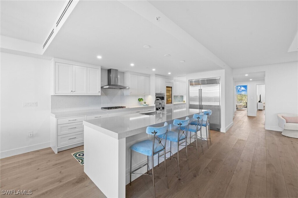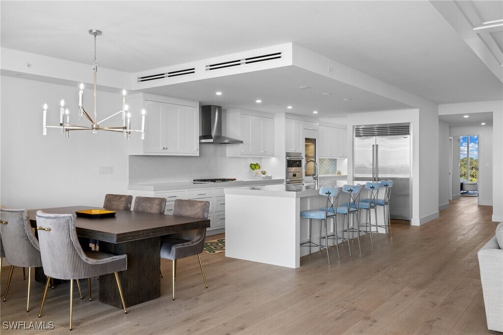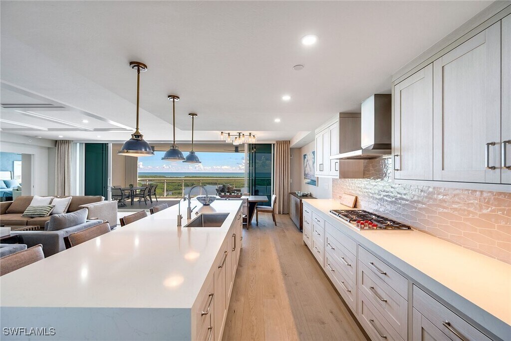Welcome to the uber luxurious Kalea Bay! This gorgeous custom designed,never been lived in condo,features walls of windows and stunning views,allowing you to soak in the Gulf’s beauty at every turn. This spacious condo includes a gourmet kitchen with top of the line appliances,a wine cooler,an expansive island,and a butler’s pantry. After preparing a meal,unwind on your lanai as the sun goes down. With 4 bedrooms and 4 baths,including a generous owners suite with a large walk-in closet,this home is the epitome of coastal living. Kalea Bay provides incredible one-of-a-kind amenities you cannot get anywhere else in Naples,including a rooftop pool,outdoor and indoor gym,an open-air poolside bar,multiple on-site dining locations,tennis and pickleball courts,and a stat of the art wellness center with a spa and salon. All of this plus a perfect location just minutes away from renowned shopping,dining,and entertainment of Naples!