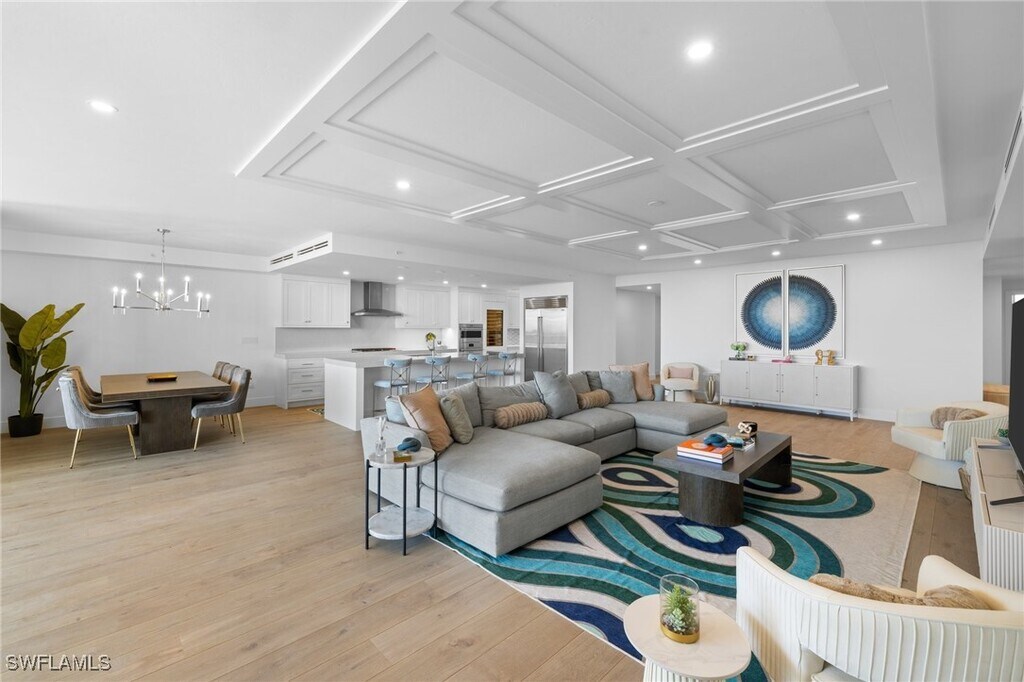 Welcome to your luxurious coastal retreat at Kalea Bay. This exquisite condo offers an expansive 3,280 square feet of sophisticated living space,perfectly designed for comfort and elegance. With four spacious bedrooms and four and a half beautifully appointed bathrooms,this residence promises ample space for relaxation and entertainment. Step inside to discover a seamless blend of modern design and timeless elegance. The open floor plan is bathed in natural light,highlighting the high-end finishes and attention to detail throughout. The gourmet kitchen,equipped with top-of-the-line appliances and sleek cabinetry,flows effortlessly into the dining and living areas,creating an ideal setting for hosting gatherings or enjoying quiet evenings at home. Each bedroom is a private sanctuary,offering generous space and en-suite bathrooms that exude spa-like tranquility. The master suite is a true retreat,featuring a luxurious bathroom and ample closet space. Enjoy breathtaking views and the gentle sea breeze from your private balcony,a perfect spot for morning coffee or evening relaxation. This condo is situated in a prime location,offering convenient access to Naples' finest dining,shopping,and entertainment options. Experience the epitome of coastal living in this stunning condo,where every detail has been thoughtfully curated to provide a lifestyle of unparalleled luxury and comfort. Don't miss the opportunity to make this exceptional property your Florida retreat!