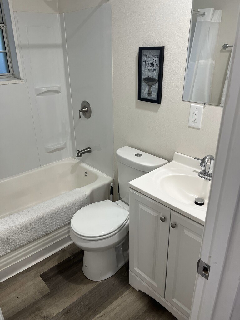 Cozy one-bedroom apartment in 6-unit apartment building on a quiet dead end street in Missionary Ridge. Less than 10 minutes to Chattanooga hospitals and to East Ridge. All utilities included, including high speed internet. Main living area has sleeper sofa with television, small dining area and fully stocked galley kitchen. Bedroom has large double door closet, queen bed, and television and connects to the bathroom with full tub/shower. This unit is on the ground level, with about 3 steps from the parking area to get to the front door. There are no stairs within the unit itself. Pets allowed with non-refundable pet deposit. Coin-op laundry on site.