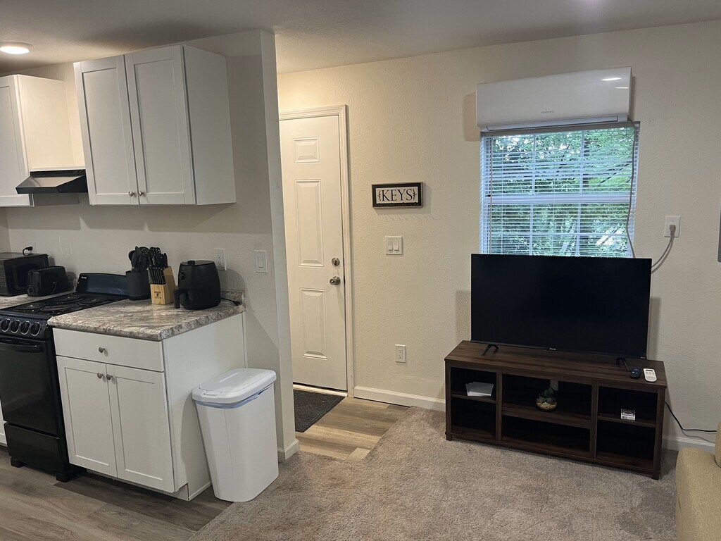 Cozy one-bedroom apartment in 6-unit apartment building on a quiet dead end street in Missionary Ridge. Less than 10 minutes to Chattanooga hospitals and to East Ridge. All utilities included, including high speed internet. Main living area has sofa with television, small dining area and fully stocked galley kitchen. Bedroom has large double door closet, queen bed, and television and connects to the bathroom with full tub/shower. This unit is located in the back of the building, on the lower level and is accessible via an outdoor staircase and well-lit walkway. Pets allowed with non-refundable pet deposit.**Laundry room is currently under construction - to be ready for tenant use by June 2024. Laundromats are located less than 5 minutes away (under 2 miles).