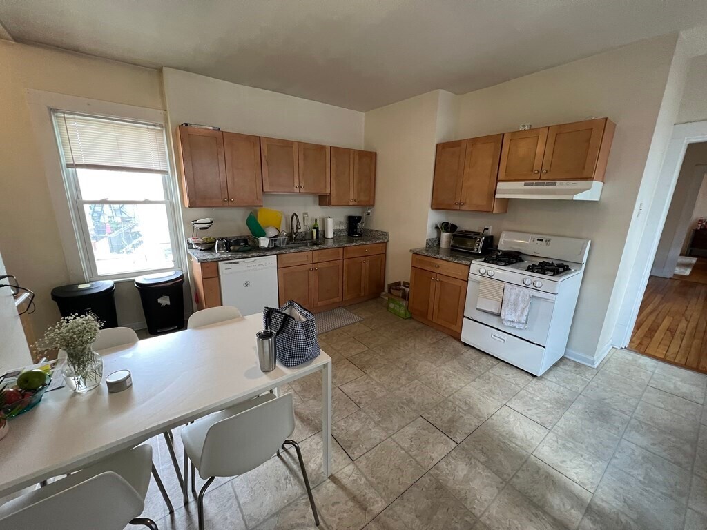 Location! Location! Location!Just a 5-minute walk to the new Gilman Green Line T station.This spacious and well-appointed 3-bedroom,2 full bath home offers comfort and quality throughout. Features include central air,a large eat-in kitchen with granite countertops,a generous dining room,and a bright,oversized living room. All three bedrooms are well-sized.Enjoy the convenience of a high-quality,commercial-grade in-unit laundry setup,along with beautiful hardwood floors throughout. Outdoor spaces include a private deck and a charming Back Bay–style patio behind the building.Bonus: a professionally set up ping pong area in the basement.No pets. Available September 1.A notably comfortable and spacious option compared to typical rentals in the area. MLS# 73503818