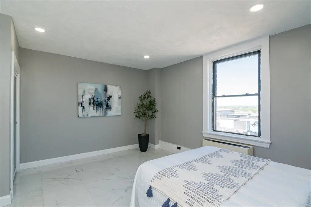 Welcome to elevated city living at Kimball Towers, Springfield’s historic “Hotel Kimball” turned prestigious condominium. Your sixth-floor corner-unit (Unit 606) offers an ideal blend of elegance, convenience, and modern upgrades. Interior Features You’ll Love: ~1,050 sq ft of living space, thoughtfully redesigned with marble floors, sleek modern doors, and recessed lighting A gourmet designer kitchen with custom cabinetry, granite countertops, and stainless steel appliances Two full bathrooms, each featuring marble tile, contemporary vanities, and rainfall showerheads for a spa-like feel Abundant windows for natural light and wide-ranging views Central heat & air conditioning Secure, key-fob entry and building surveillance Building & Amenities: Laundry rooms located on every floor Amazon Hub for secure package delivery Optional storage units available Access to a ballroom/event space by request On-site garage with pay-per-spot parking