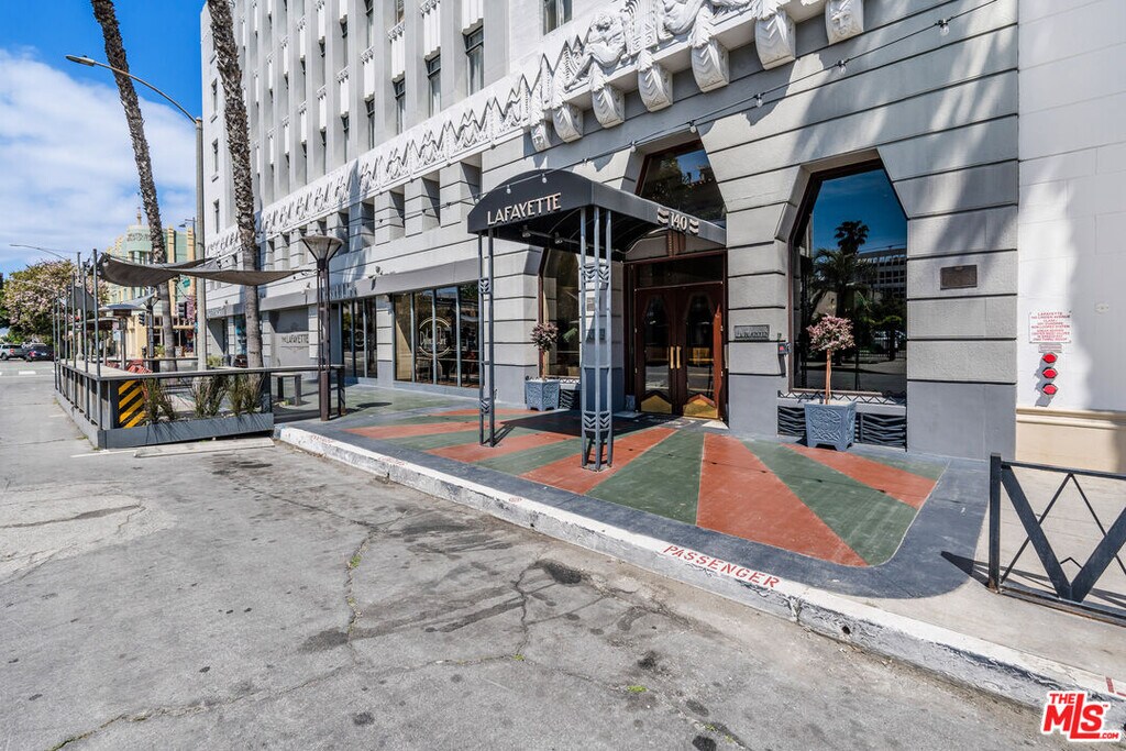 Nestled in the renowned Lafayette Condominium and located in the heart of downtown Long Beach, this exquisitely renovated studio offers an exceptional floor plan with only one shared wall. As an end unit, it's bathed in natural light streaming in through oversized windows at both corners. Inside, you'll find a custom kitchen with built-in cabinetry, quartz countertops, stainless steel appliances, and a built-in microwave. The flooring has been recently upgraded to water-resistant wood-laminate, and the ceiling has been refinished with recessed (canned) dimmable lighting for both ambiance and function. The bathroom has been fully remodeled with clean, tasteful finishes. Convenience is top-notch: quick access to the elevator and stairs. Common amenities are plentiful, including a comprehensive fitness center, a grand Art Deco lobby with a relaxing library and lounge, and an ornate copper elevator adding historic charm. On the rooftop: enjoy sweeping views of the city and ocean from a handsome deck and solarium. There's also a spacious billiards room (pool table, shuffleboard, etc.), an outdoor patio with BBQ areas, and for pet lovers, a dog washing station. Laundry facilities are tech-savvy and situated onsite. The Lafayette complex is in the East Village Arts District / Downtown Long Beach, which gives it high walkability and access to many urban conveniences. MLS# 25595973