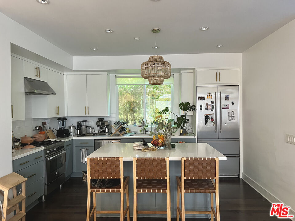 Welcome to West Hollywood / Hollywood! Enjoy unobstructed views of the Hollywood Hills and Downtown Los Angeles from two rooftop decks. This tri-level single-family home, built in 2014, offers modern design, quality finishes, and a prime location close to the Sunset Strip and Runyon Canyon. Trader Joe's, Santa Monica Boulevard, Plummer park, and neighborhood restaurants and cafes are all just a short 10-minute stroll away!Built in 2014 and meticulously maintained, the home features top-of-the-line appliances -- Bertazzoni, Bosch, and Thermador-- along with Caesarstone countertops, Grohe fixtures, and custom hardwood floors. See detail about each floor:-The first floor includes a private two-car garage and an ensuite bedroom that can also serve as a home office.- The second level offers an open floor plan with high ceilings, a large center island kitchen, and a comfortable living area, along with a powder room. - On the third floor, you'll find two additional bedroom suites, two bathrooms, and a laundry area. - The primary bedroom includes two custom closets with built-in shelving.- Upstairs, two rooftop decks provide a seamless extension of the living space, ideal for relaxing, entertaining, or taking in panoramic city and hillside views. *Note* Rental comes. unfurnished, photos are for example only. MLS# 25618081