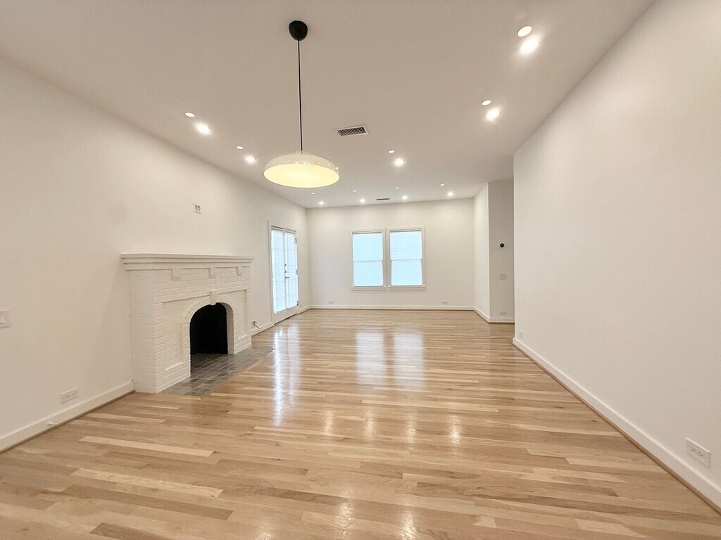 Stunning recently renovated 1/1 in unique duplex (front unit) across from The Menil Campus!,elegant finishes throughout,lots of natural light,elegant white oak hardwoods,original mock fireplace,open living area,amazing kitchen with stainless steel appliances,under cabinet lighting and quartz countertops,high ceilings,recessed lighting,good closet space,beautiful bath with subway tile tub enclosure,one covered parking space included w/ tandem parking for 2nd vehicle,storage room included,private deck overlooking the park! very remarkable unit!,dine at the Menil Bistro and take walks in the park ! MLS# 77724983